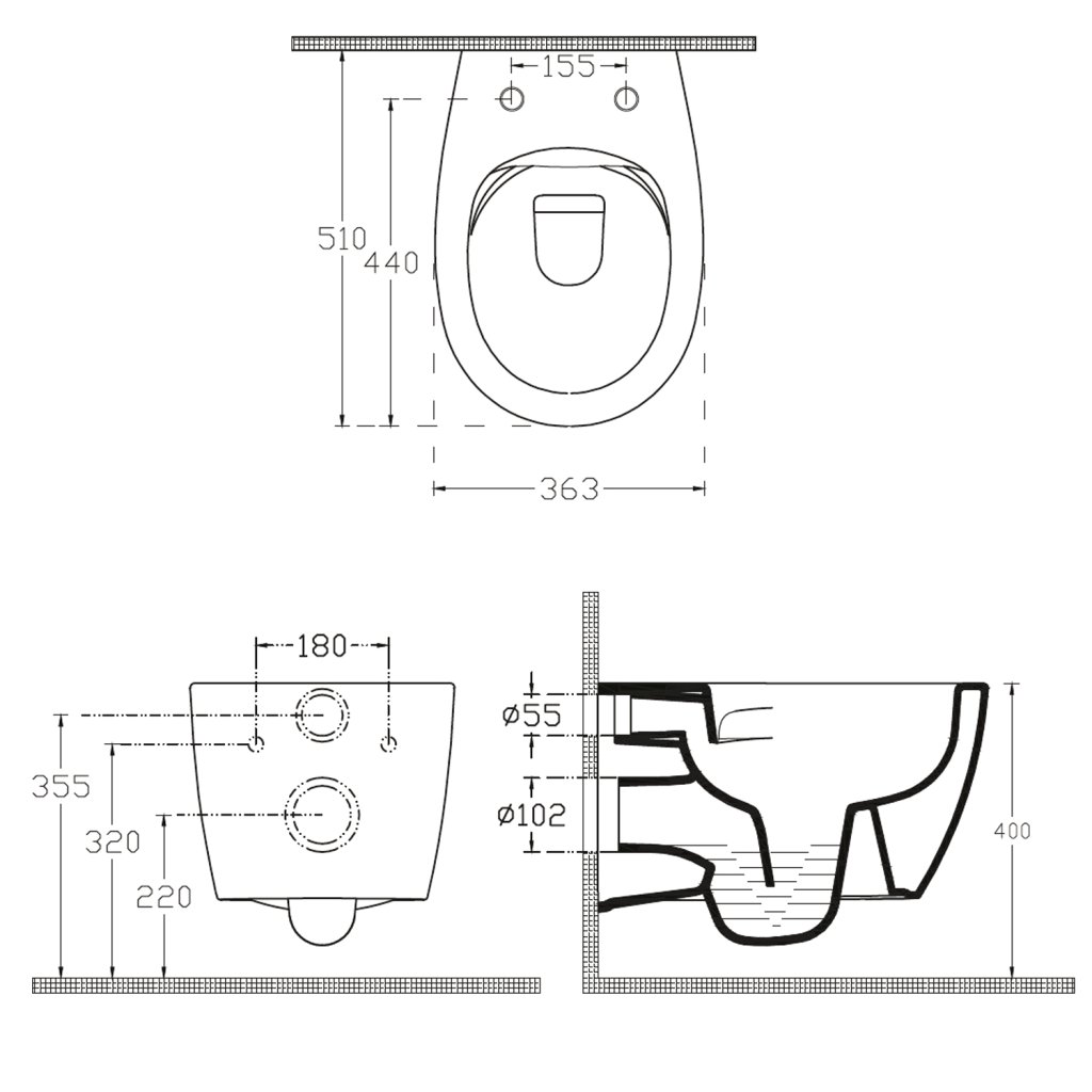 , SENTIMENTI vas WC montat pe perete, fără margine, 36x51cm, alb, 10AR02012