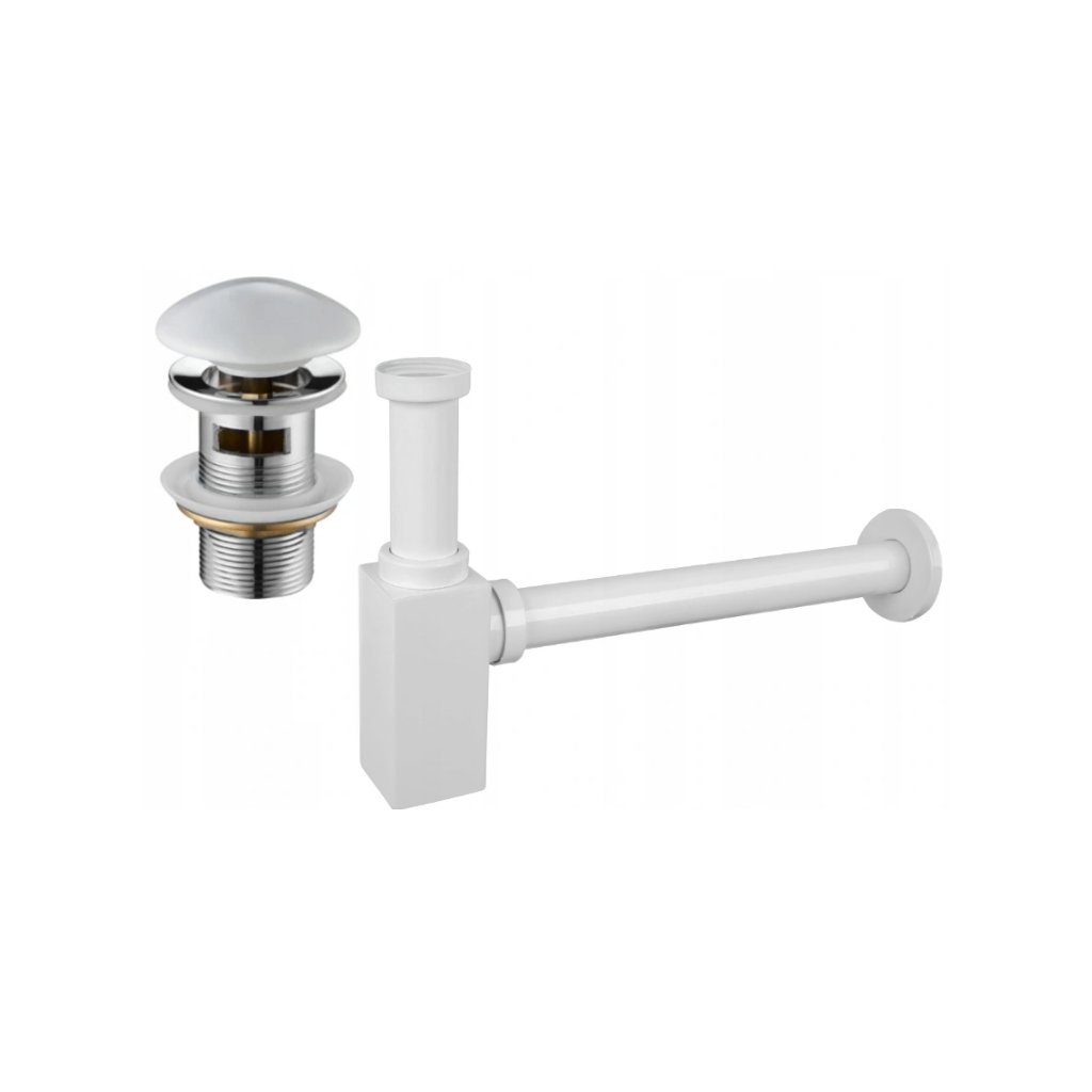 Accesorii Mexen, Sifon pătrat chiuvetă cu dop ceramic click-clack, cu preaplin, alb, 7992060-25
