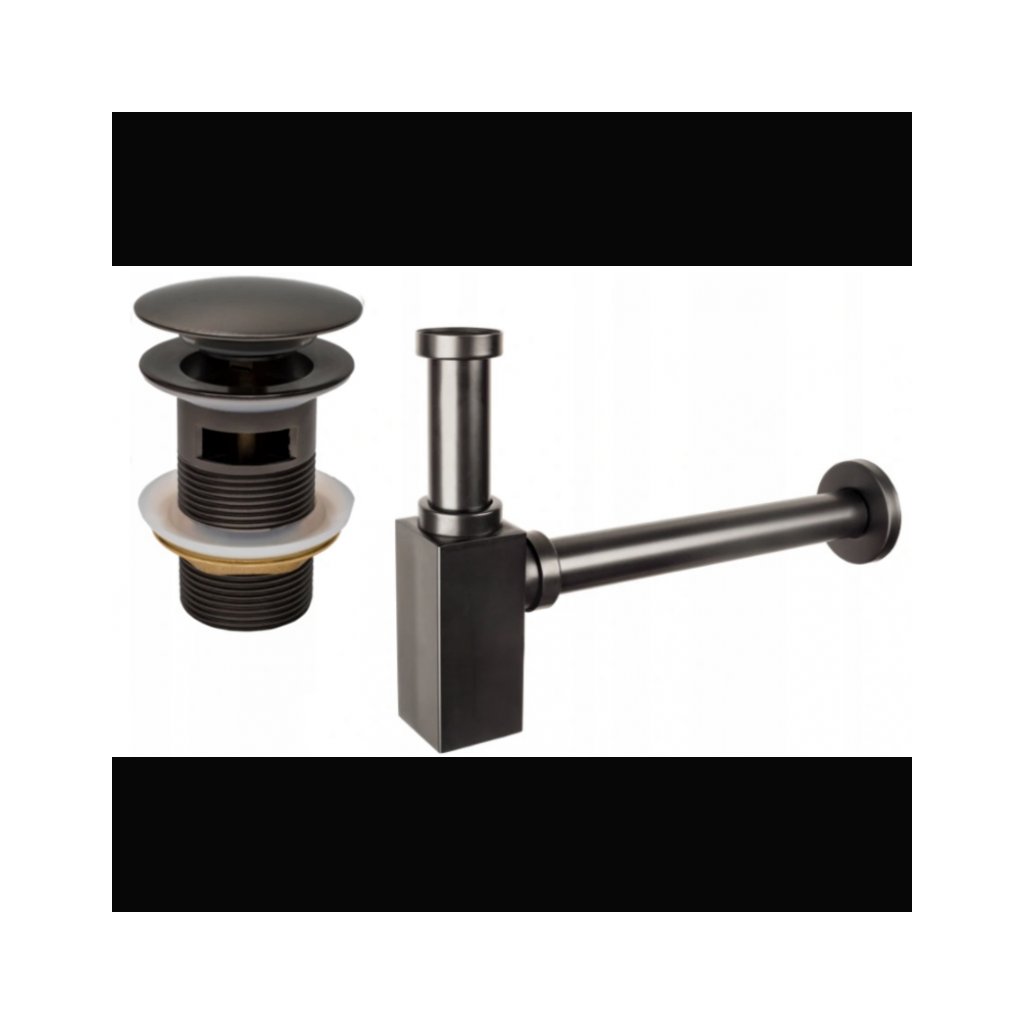 Accesorii Mexen, Sifon pătrat pentru chiuvetă cu dop click-clack, cu preaplin, grafit, 7992060-66