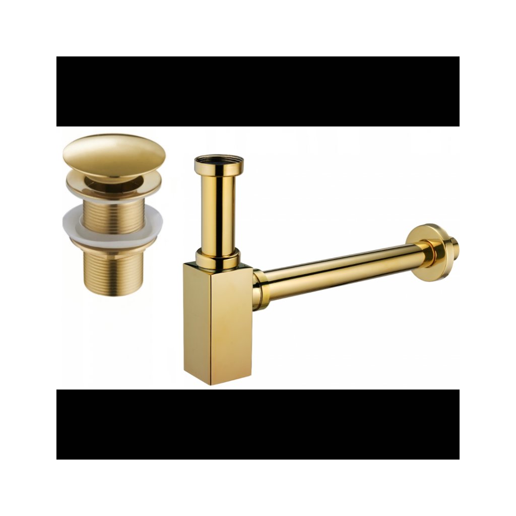 Accesorii Mexen, Sifon pătrat pentru chiuvetă cu dop click-clack, fără preaplin, auriu, 7991060-50