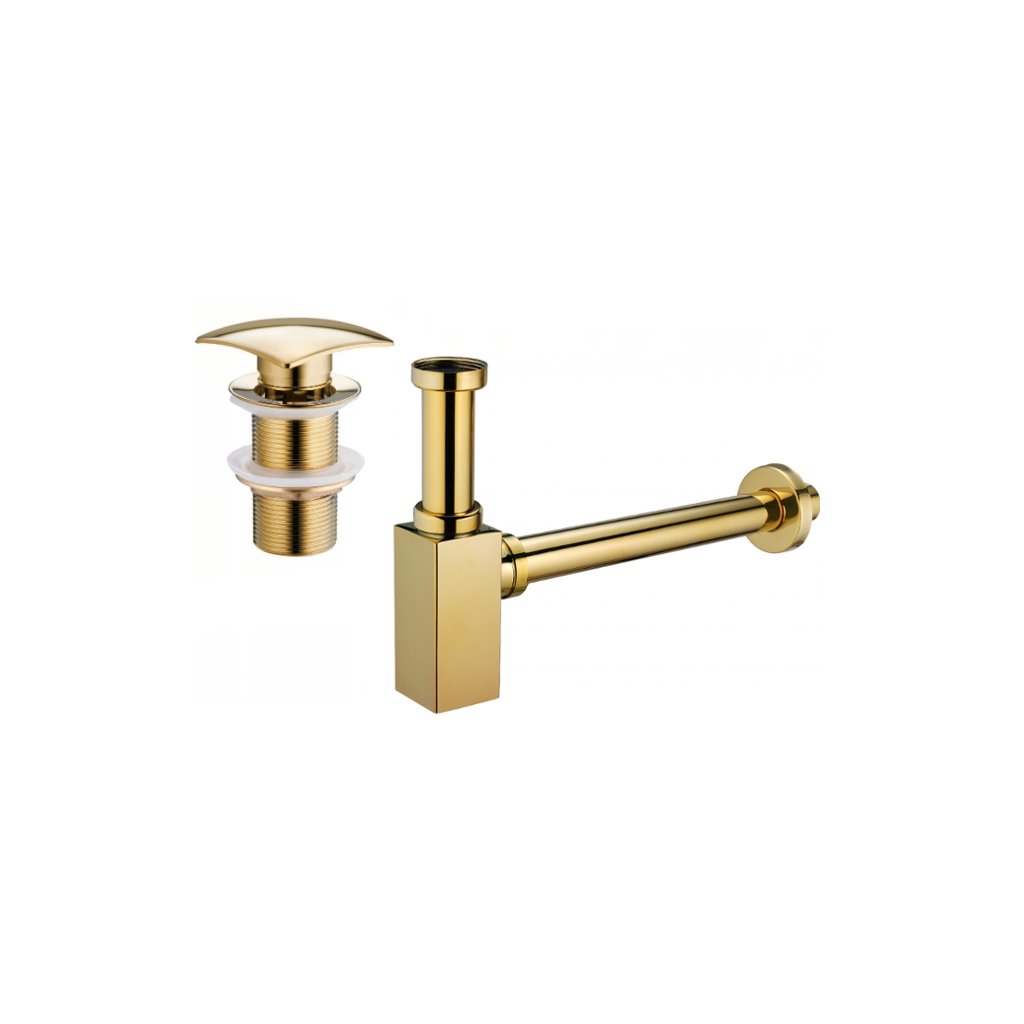 Accesorii Mexen, Sifon pătrat pentru chiuvetă cu dop click-clack, fără preaplin, auriu, 7991660-50