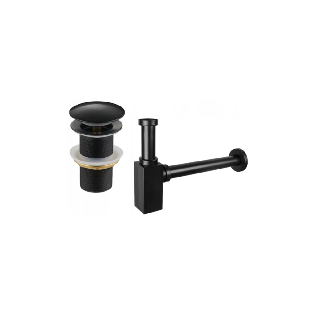 Accesorii Mexen, Sifon pătrat pentru chiuvetă cu dop click-clack, fără preaplin, negru, 7991060-70