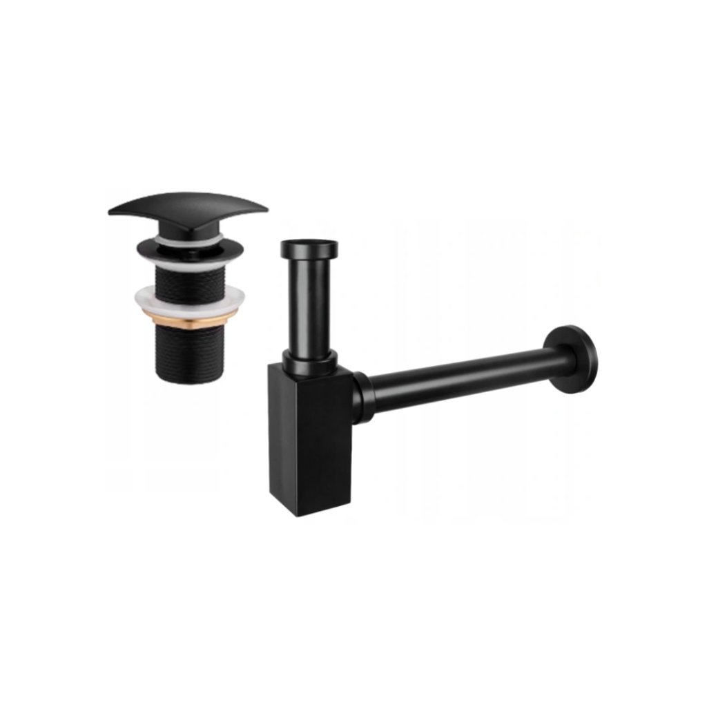 Accesorii Mexen, Sifon pătrat pentru chiuvetă cu dop click-clack, fără preaplin, negru, 7991660-70