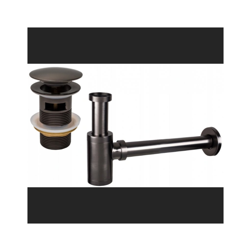 Accesorii Mexen, Sifon pentru sticla chiuveta rotund cu dop click-clack, cu preaplin, grafit, 7992050-66