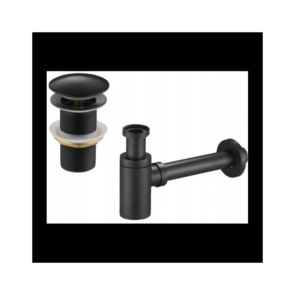 Accesorii Mexen, Sifon pentru sticla chiuveta rotund cu dop click-clack, fara preaplin, negru, 7991050-70