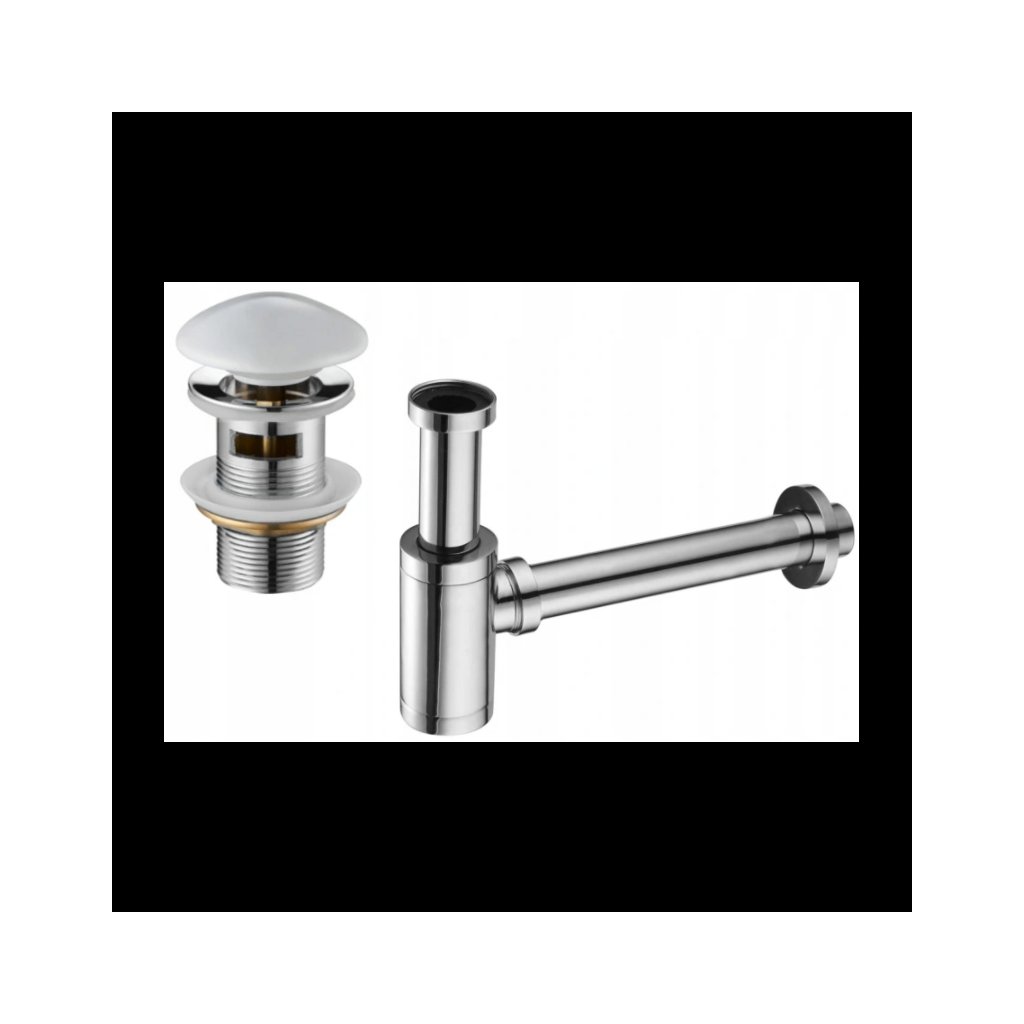 Accesorii Mexen, Sifon rotund pentru chiuveta cu dop ceramic click-clack, cu preaplin, crom - alb, 7992050-02