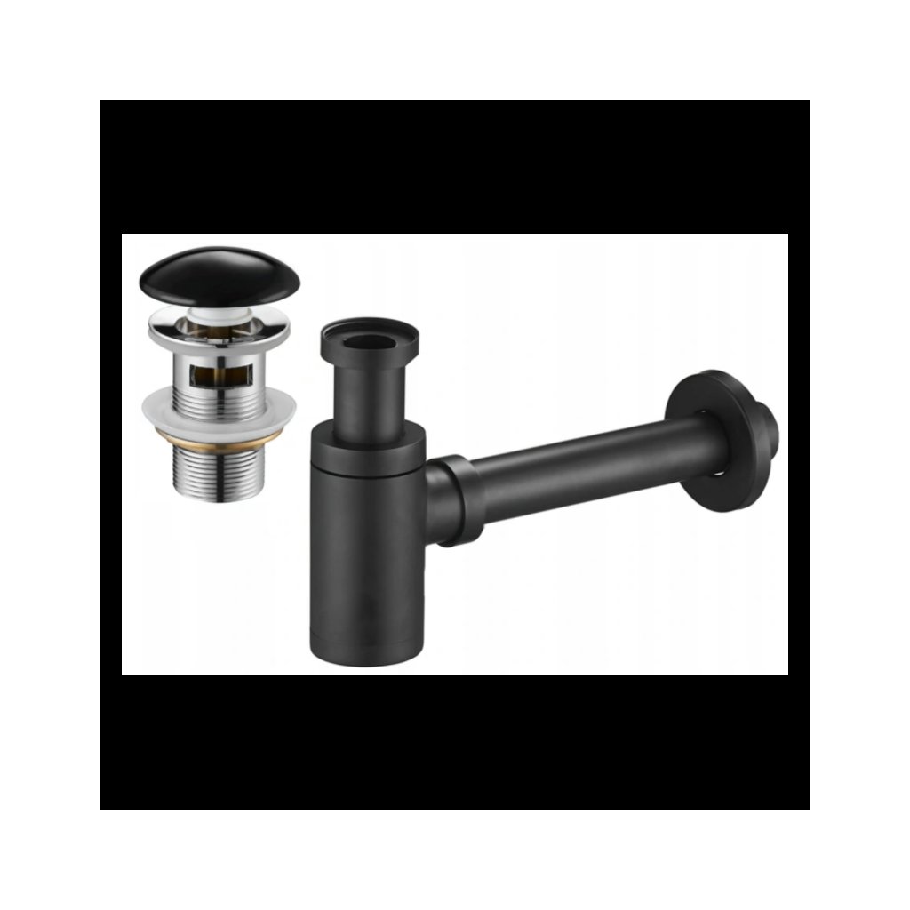 Accesorii Mexen, Sifon rotund pentru chiuvetă cu dop ceramic click-clack, cu preaplin, negru, 7992050-75