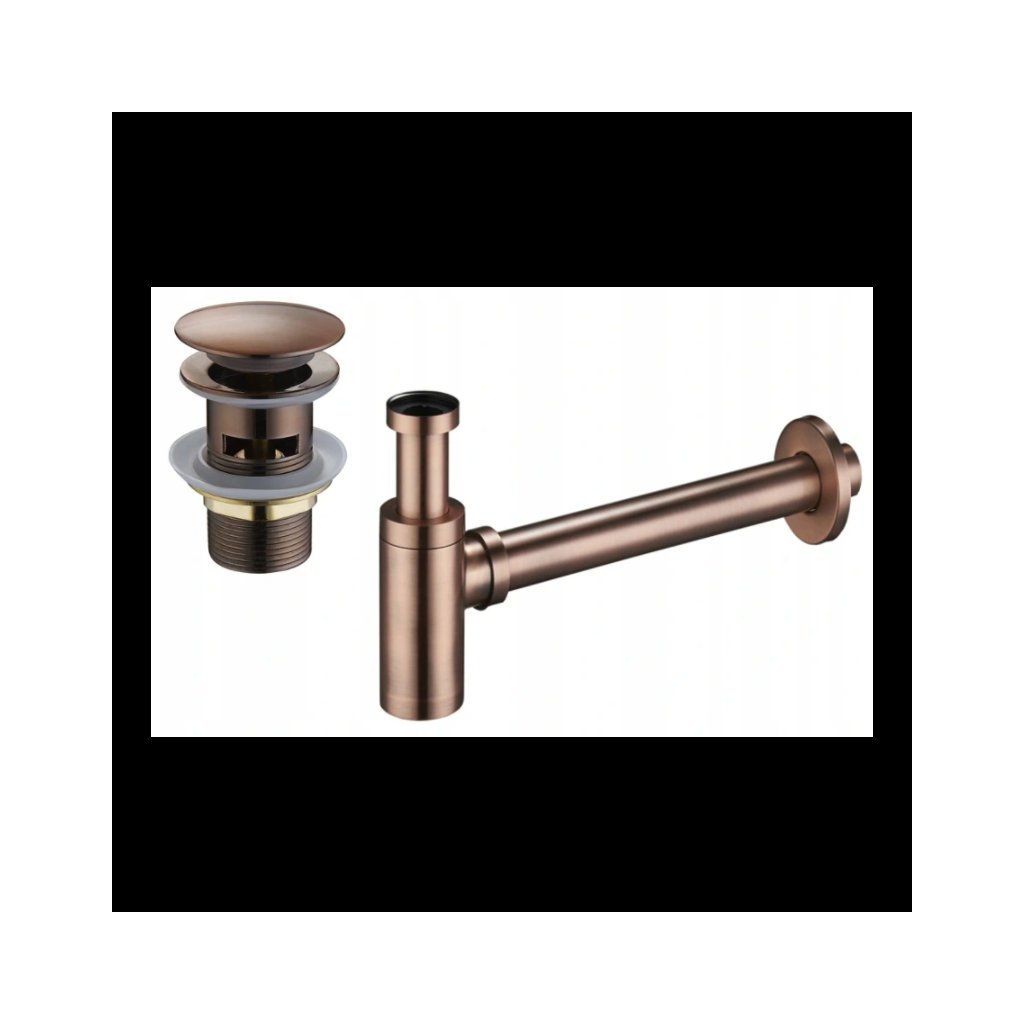 Accesorii Mexen, Sifon sticla lavoar rotund cu dop click-clack, cu preaplin, cupru antic, 7992050-45