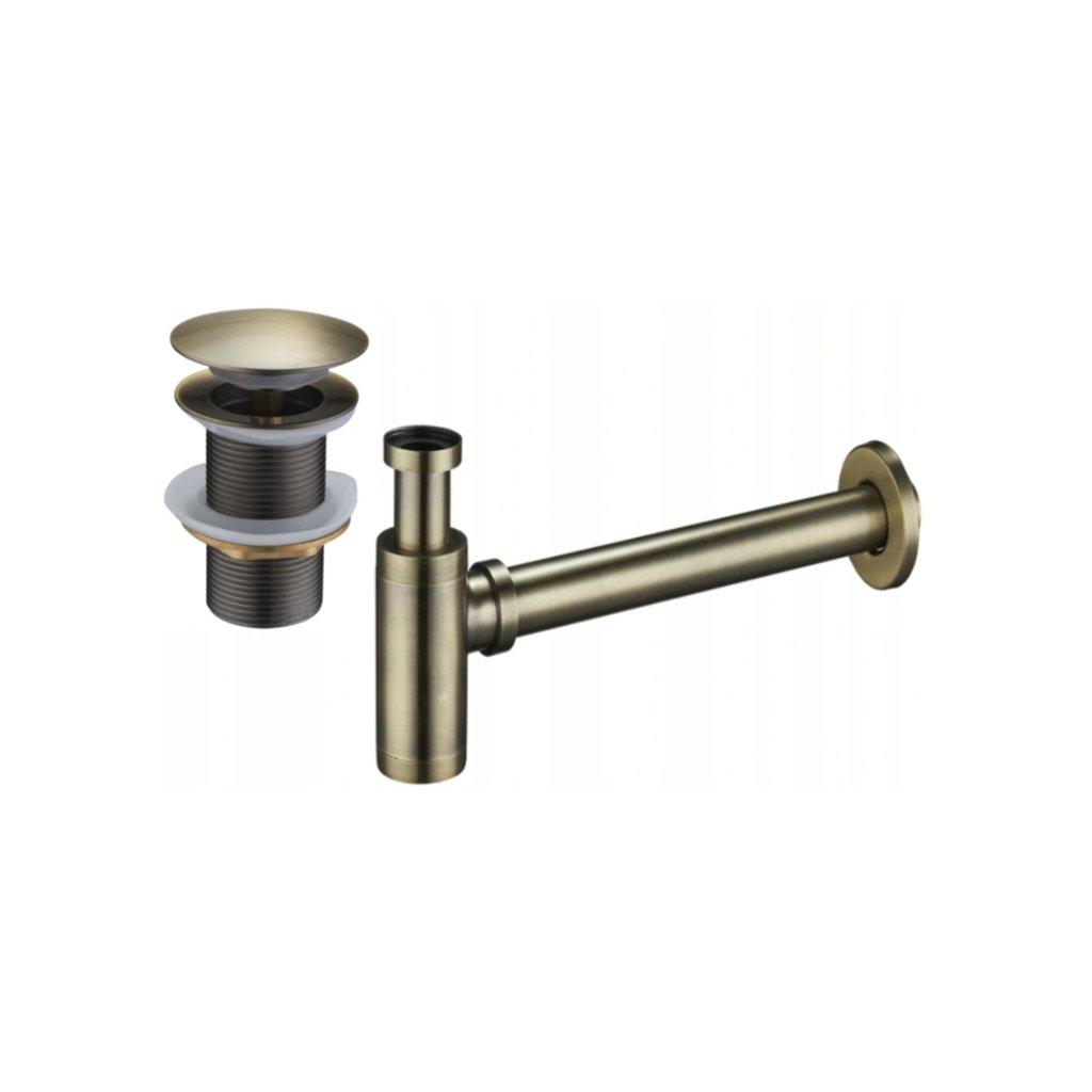 Accesorii Mexen, Sifon sticle lavoar rotund cu dop click-clack, fara preaplin, alama antica, 7991050-40