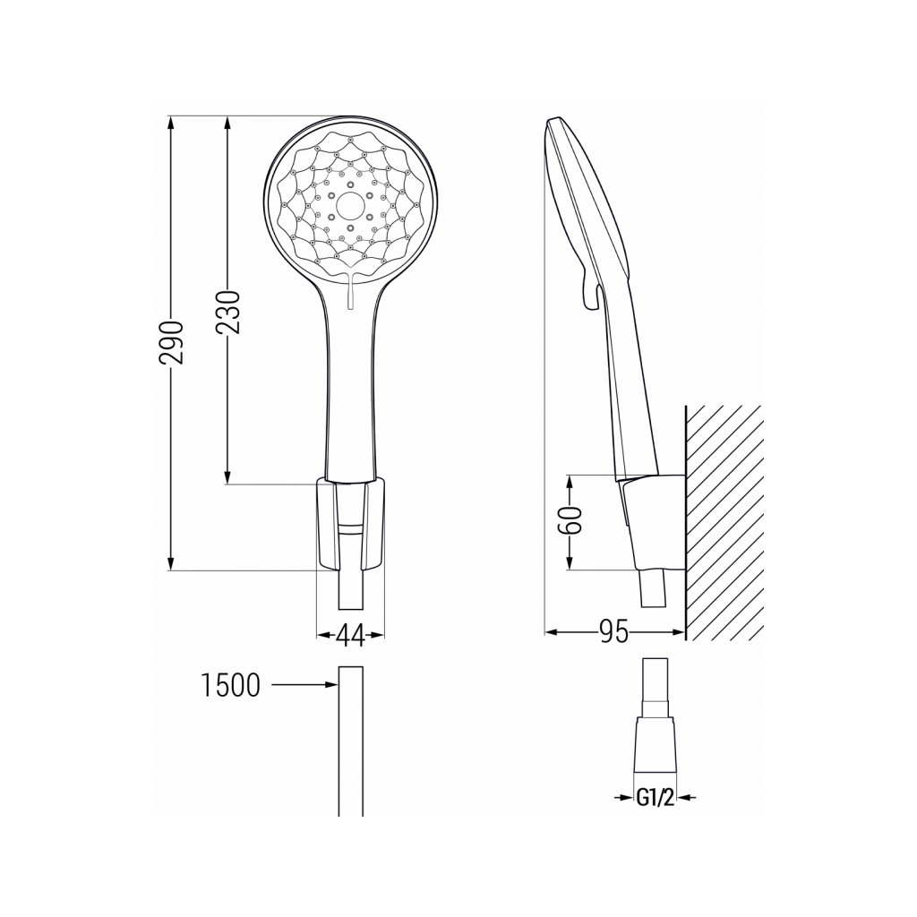 Accesorii Mexen - Set duș de mână cu 1 punct R-74, crom/alb, 785745052-00