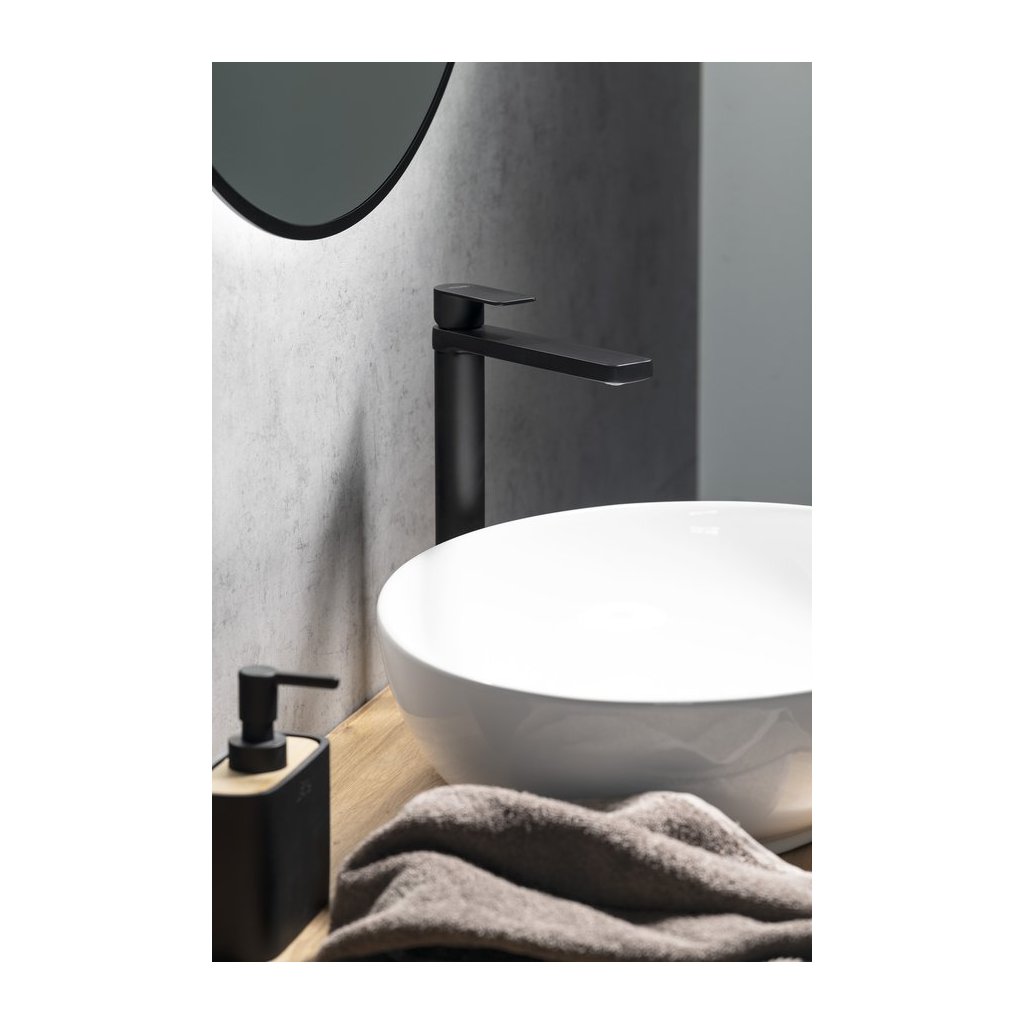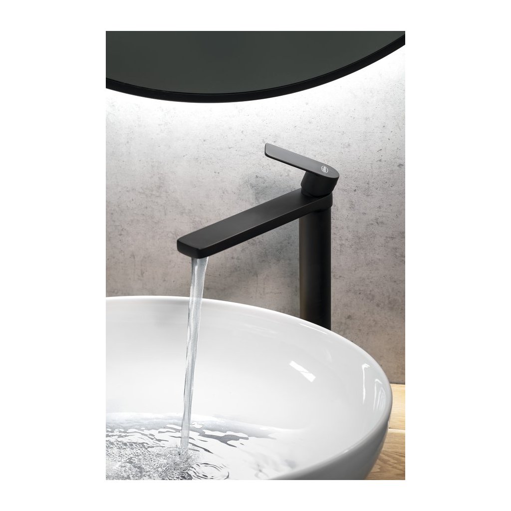 Aqualine, baterie de lavoar autonomă DAPHNE, înaltă, fără priză, negru mat, DH601B