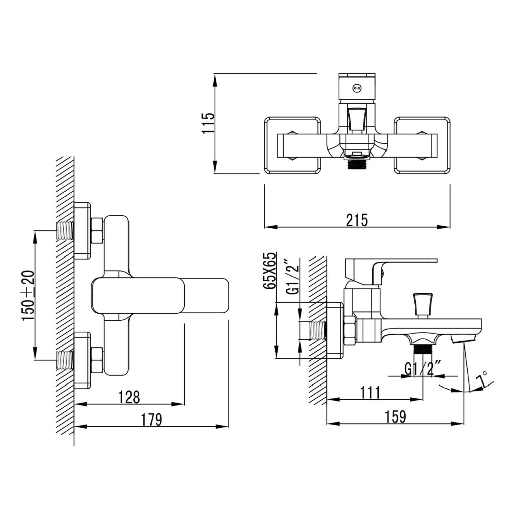 Aqualine, baterie de perete pentru cada FACTOR, crom, FC310