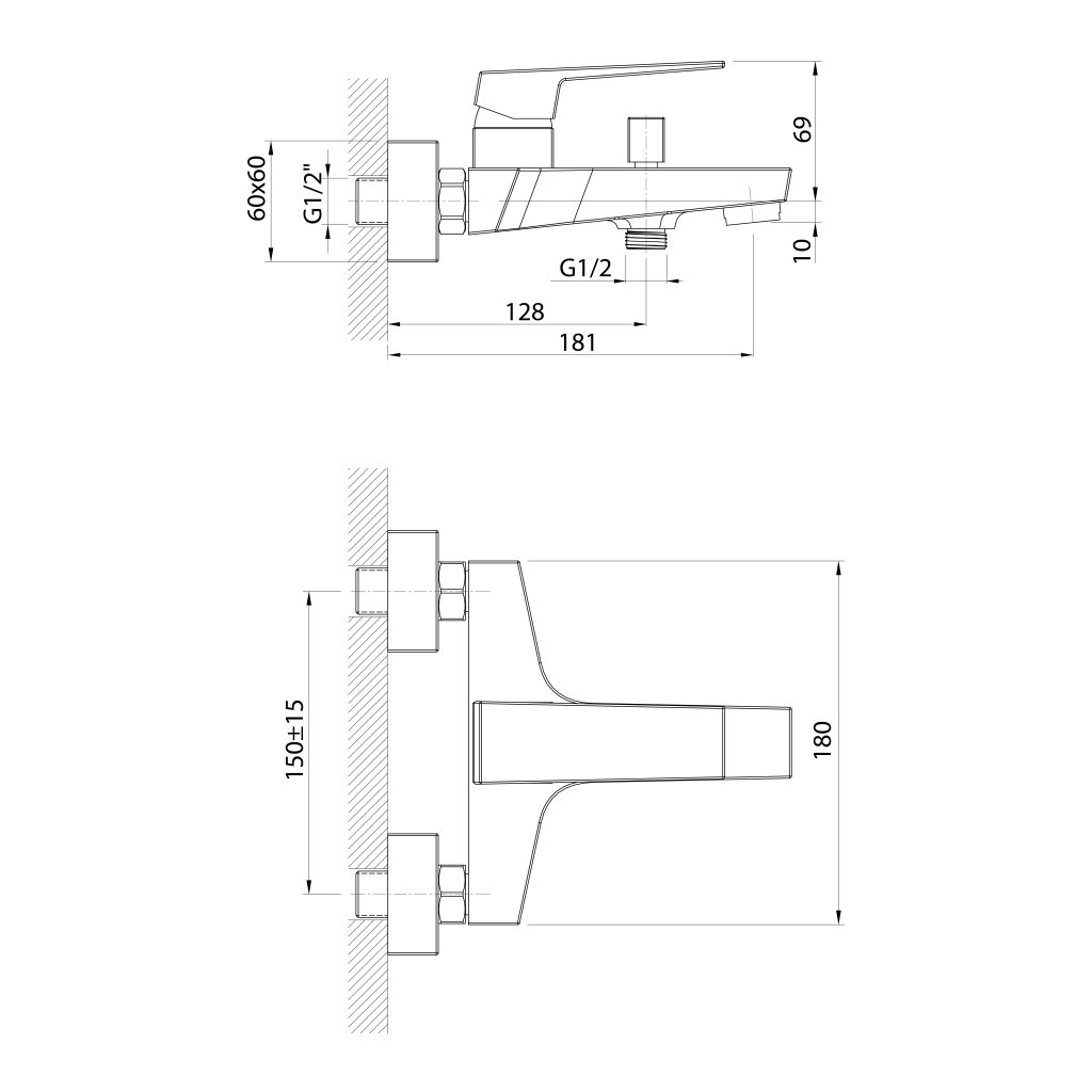 Aqualine, baterie perete baie RITMO, crom, RT010