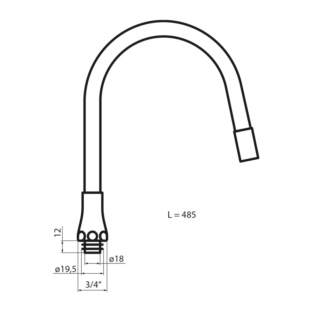 Aqualine, Braț flexibil pentru pipă de duș pentru baterie, 470 mm, 3/4", negru mat, 43983
