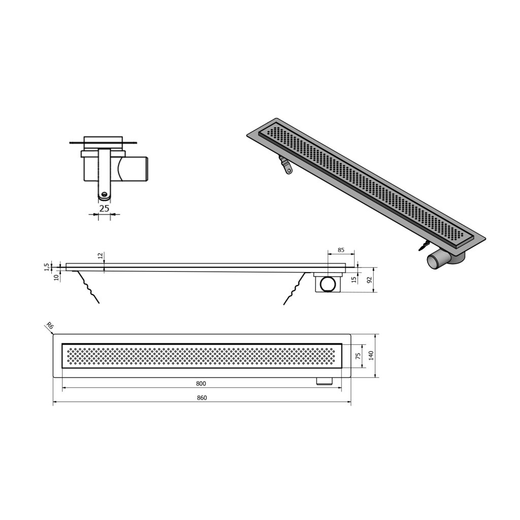 - Dimensiunea gratarului de acoperire 800x75 mm