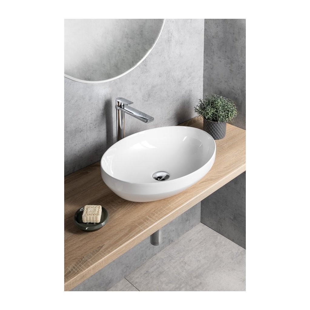 O chiuvetă modernă de blat, cu o formă ovală curată, ideală pentru băile unde designul, aerisirea și întreținerea ușoară sunt o prioritate.