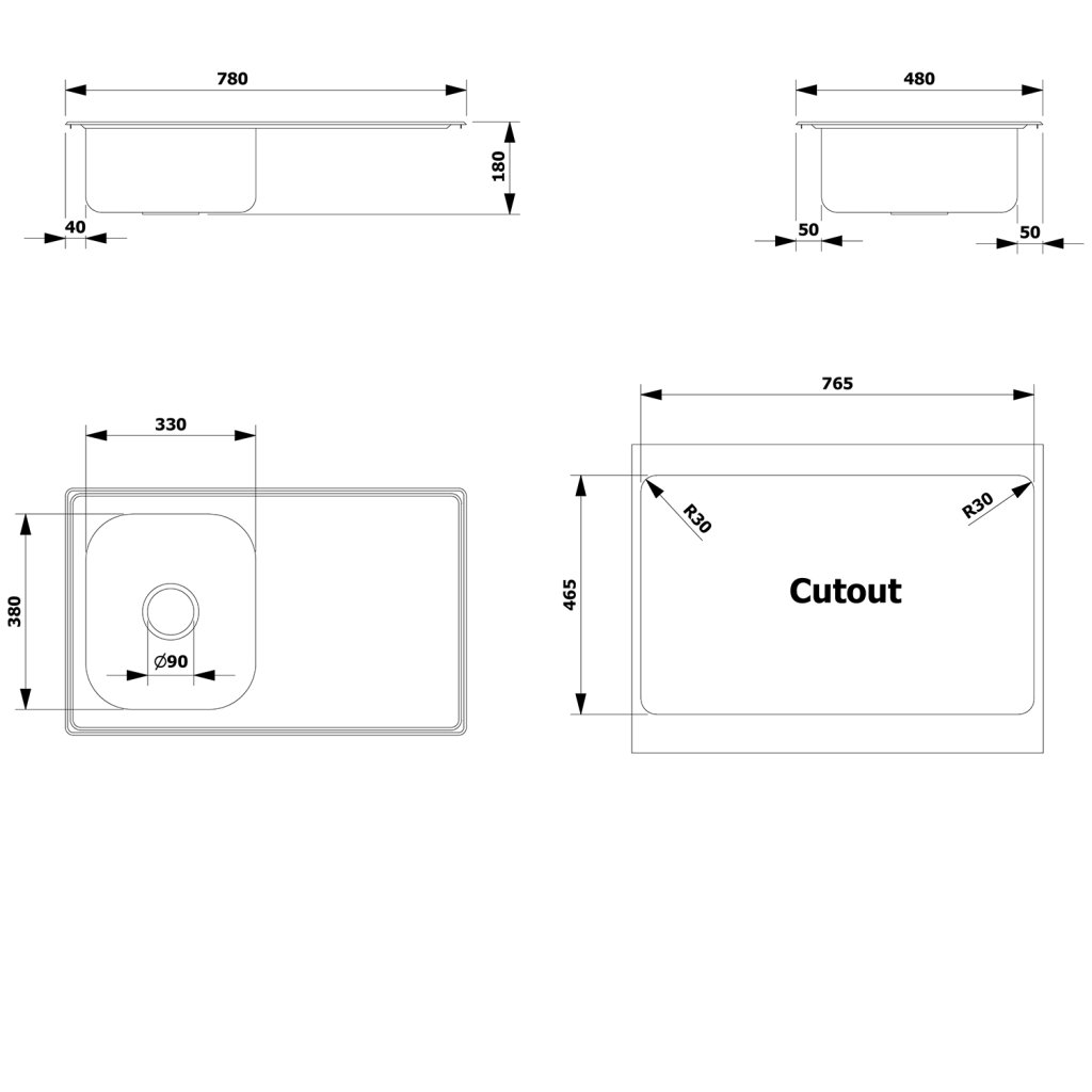 Aqualine, Chiuveta inox 78x18x48cm, AQ7848B