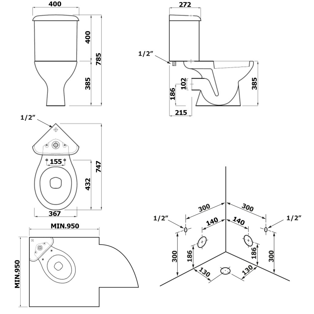 Aqualine, CLIFTON Vas combinat WC pe colț cu rezervor, inclusiv set de apă, alb, FS1PK