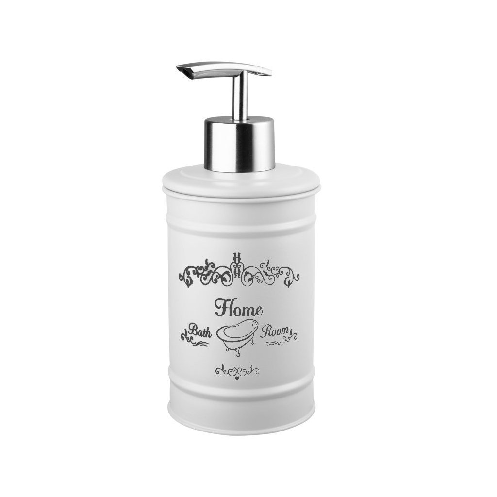 Seria de accesorii din otel inoxidabil si lacuit alb cu decor este o alegere excelenta pentru bai in stil vintage.
