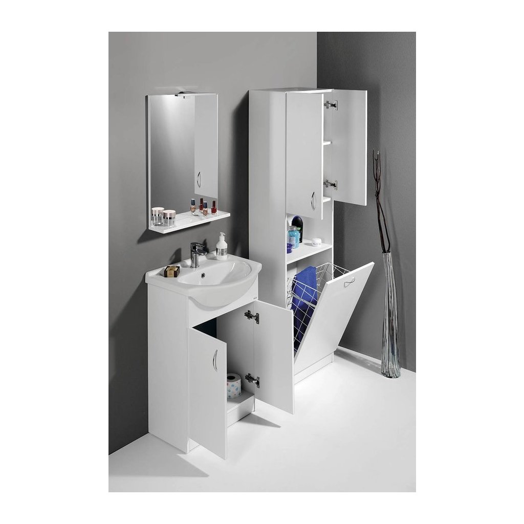 Mobilier de baie din laminat alb, cea mai simpla solutie pentru baia ta. Oferta de dulapuri chiuvete in 4 dimensiuni in latimi de la 50 cm pana la 65 cm in combinatie cu mai multe variante de dulapuri suplimentare ofera o amenajare favorabila a mobilierului pentru aproape fiecare baie la cel mai bun pret.