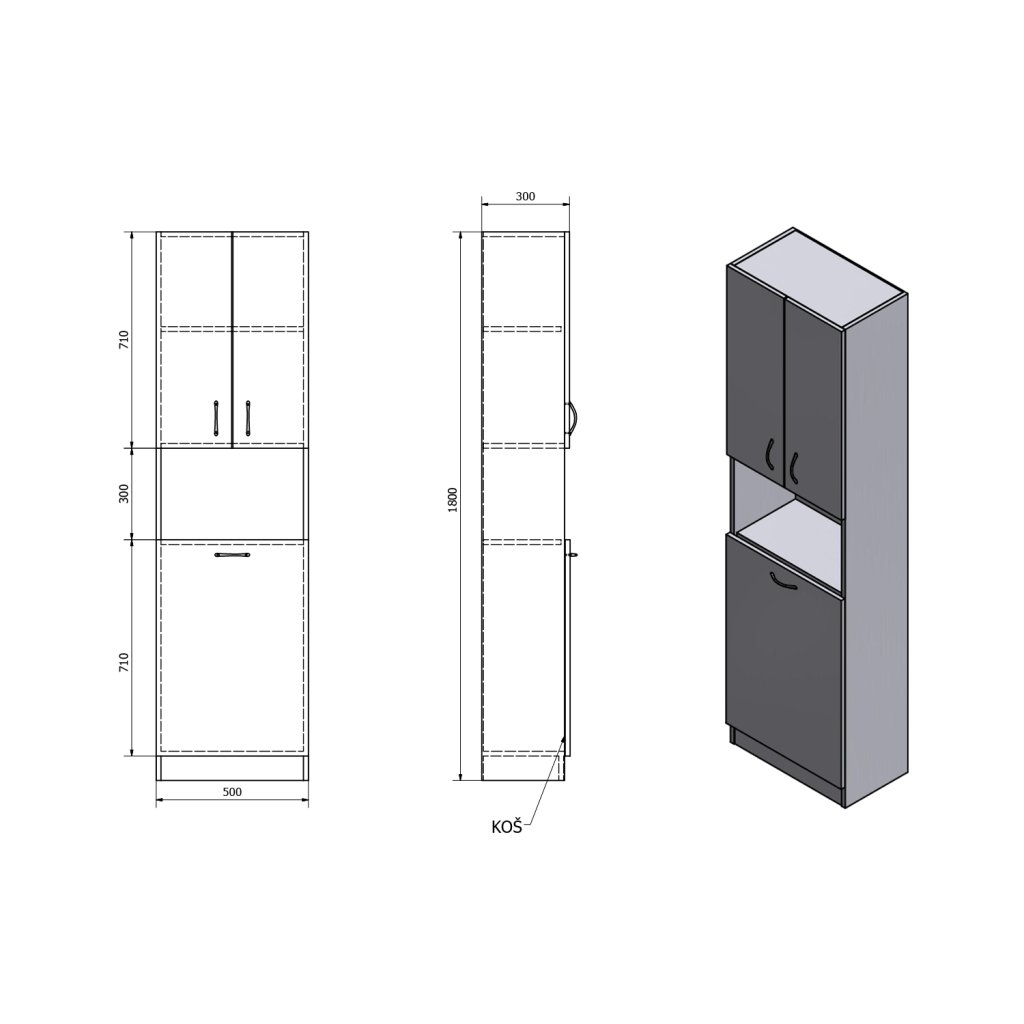 Aqualine, dulap înalt SIMPLEX ECO cu coș 50x180x30cm, SIME510