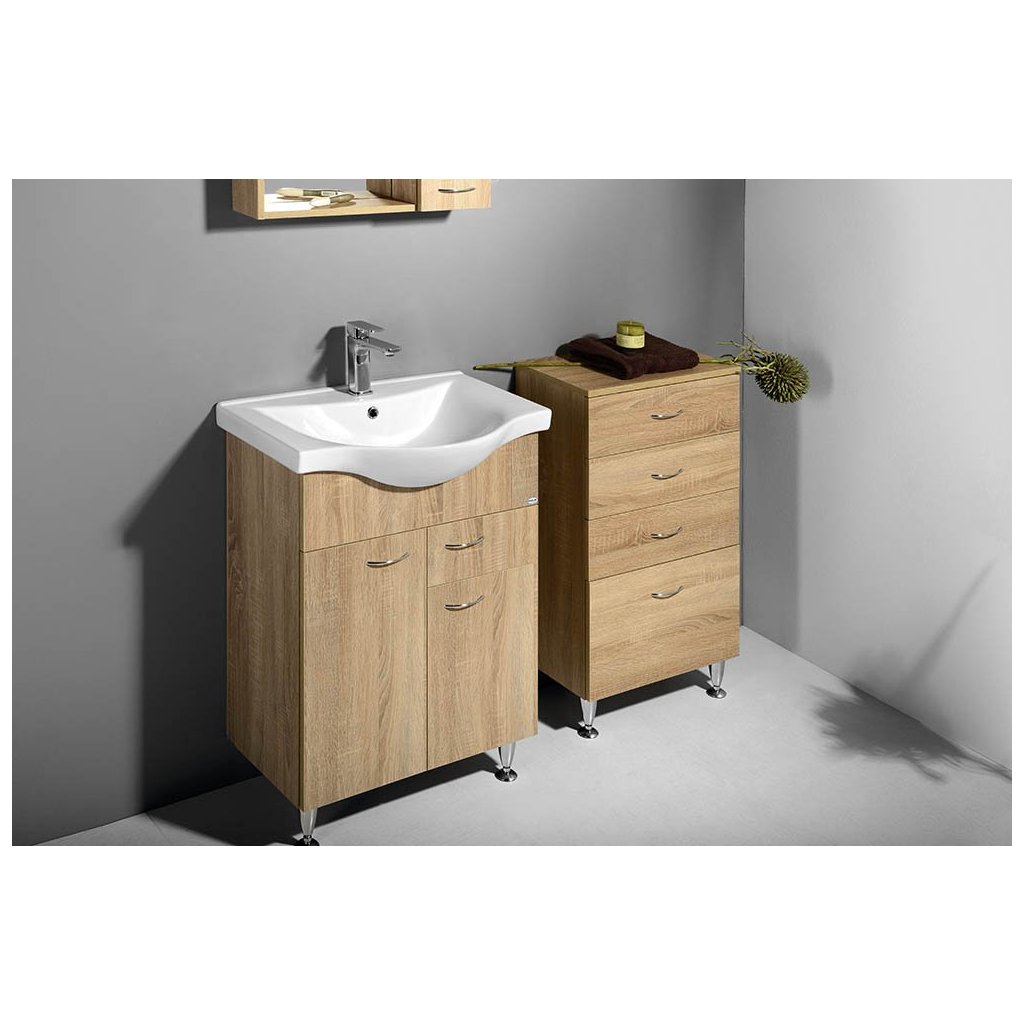 Linia inovatoare de dulapuri KERAMIA FRESH combină cu succes calitatea dovedită și aspectul clasic al dulapurilor de baie cu un lavoar ceramic rotunjit ZARA. Dulapurile sunt montate pe perete, dar unele dintre ele pot fi echipate și cu picioare de susținere pentru o instalare mai ușoară. Seria este produsă într-un finisaj alb lucios sau într-un decor de lemn deschis, stejar platinat.