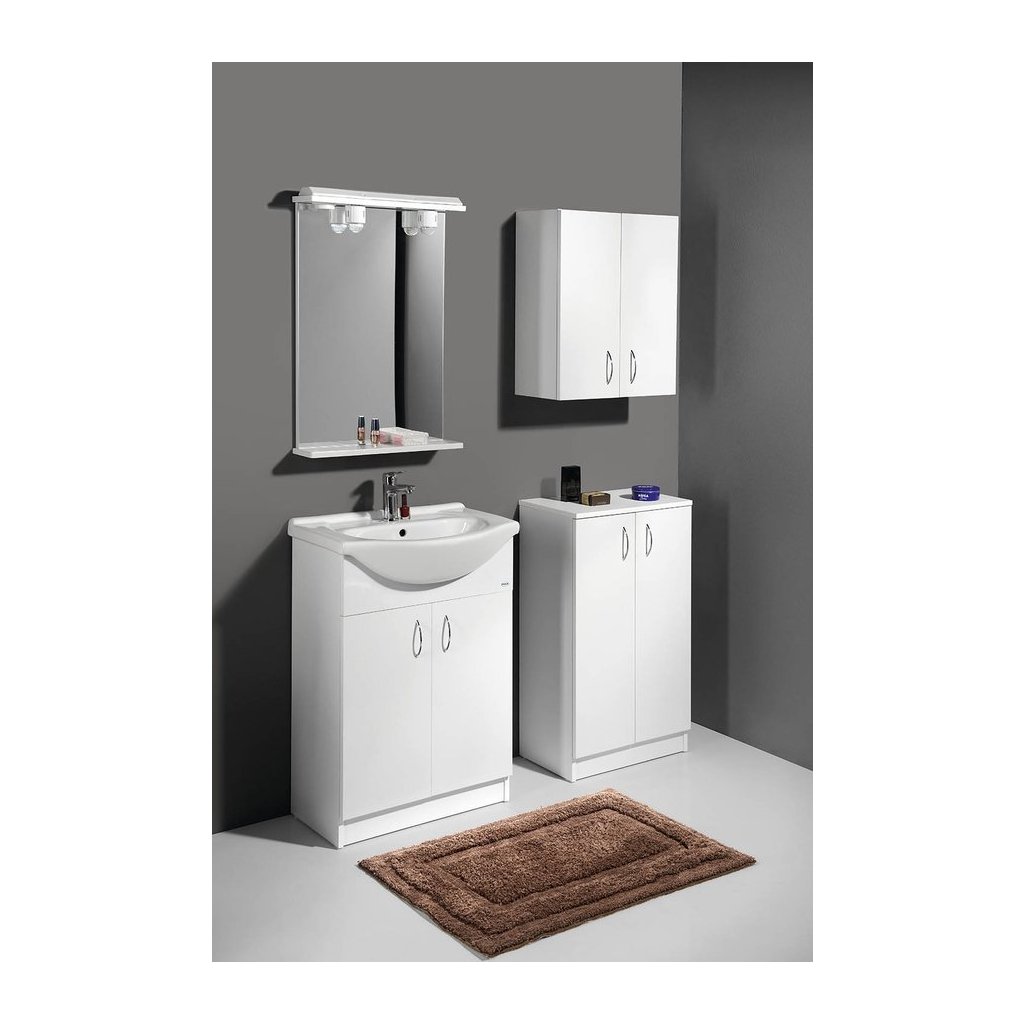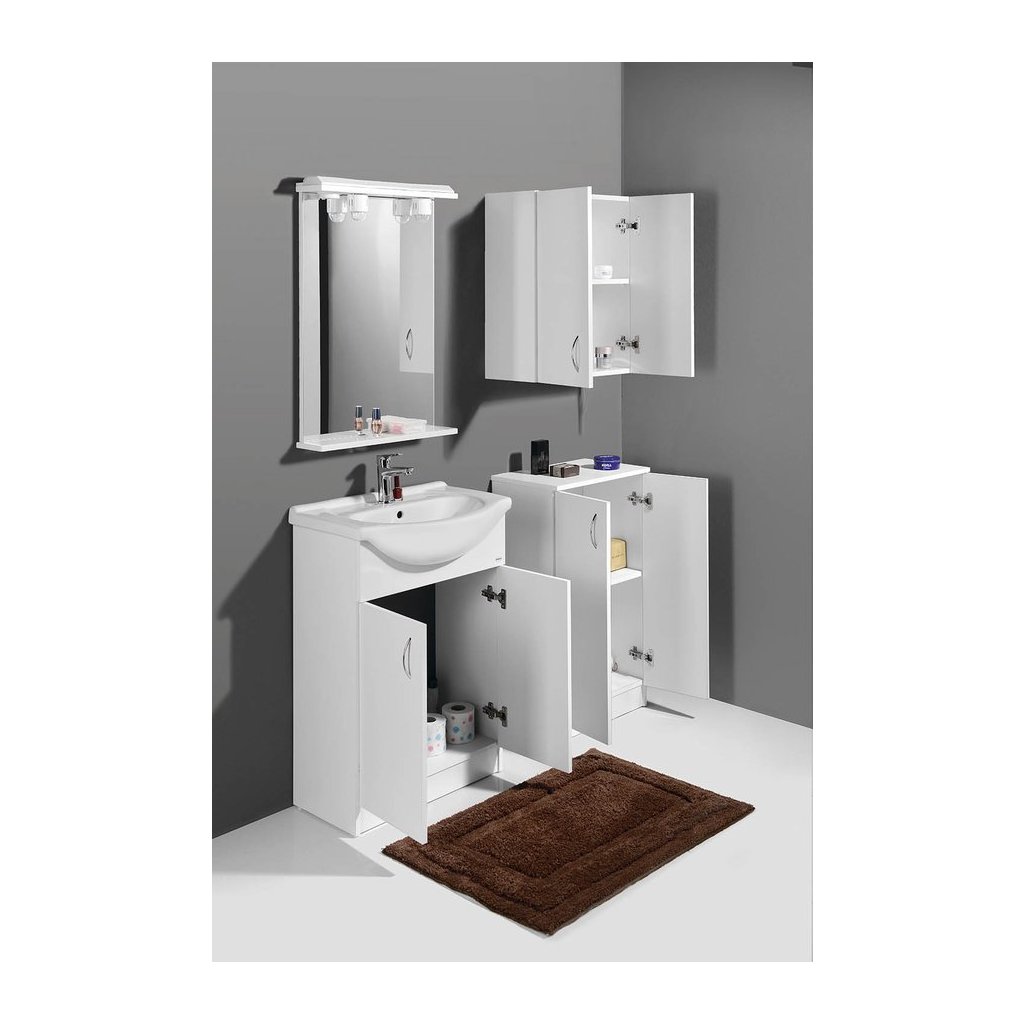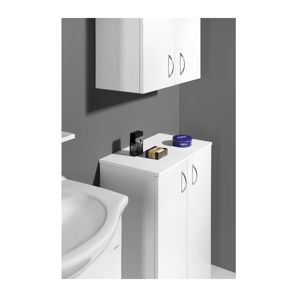 Mobilier de baie din laminat alb, cea mai simpla solutie pentru baia ta. Oferta de dulapuri pentru chiuveta in 4 dimensiuni in latimi de la 50 cm la 65 cm in combinatie cu mai multe variante de dulapuri suplimentare ofera o amenajare favorabila a mobilierului pentru aproape fiecare baie la cel mai bun pret.
