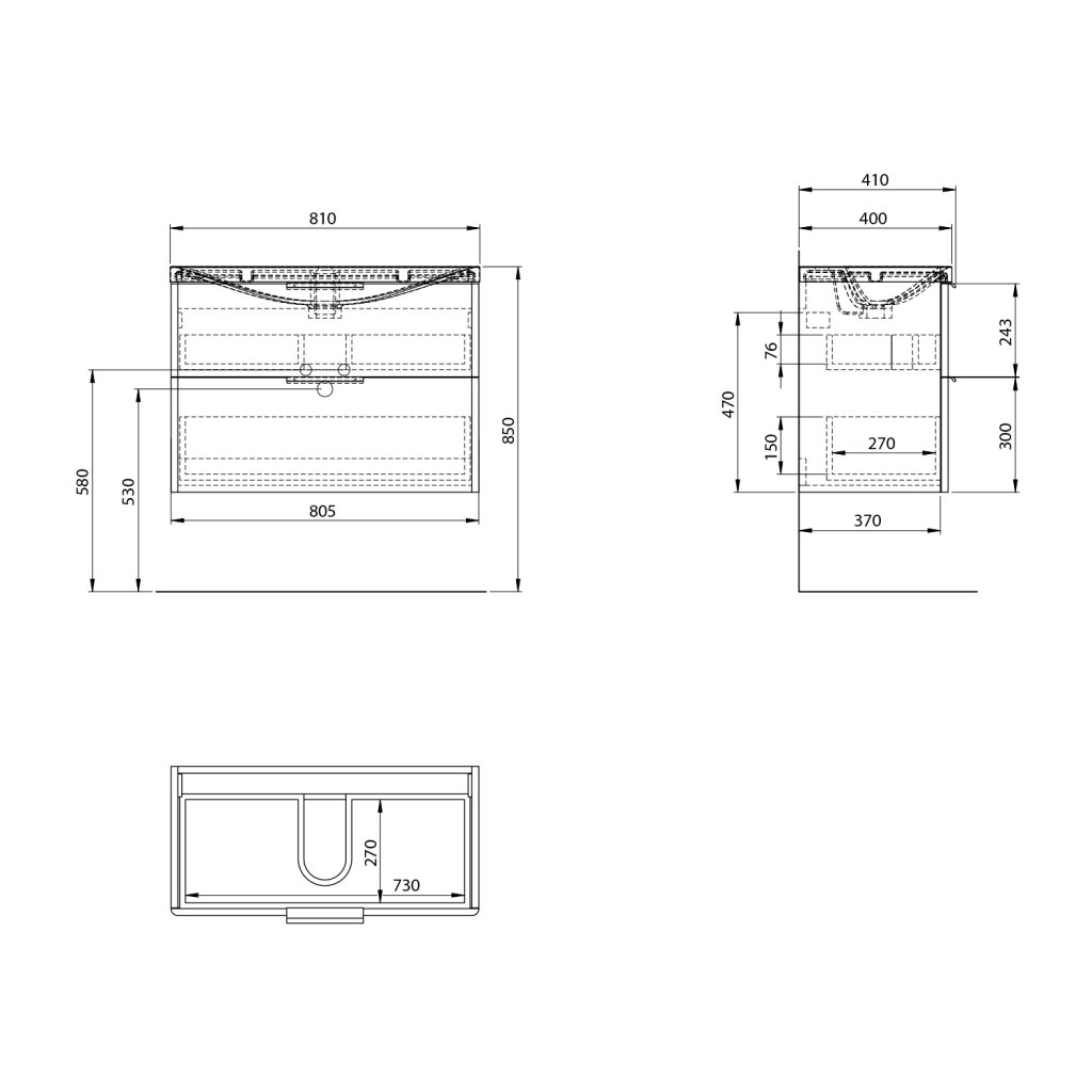 Aqualine, Dulap lavoar DENEB 80.5x55x39.4cm, alb mat, DN284