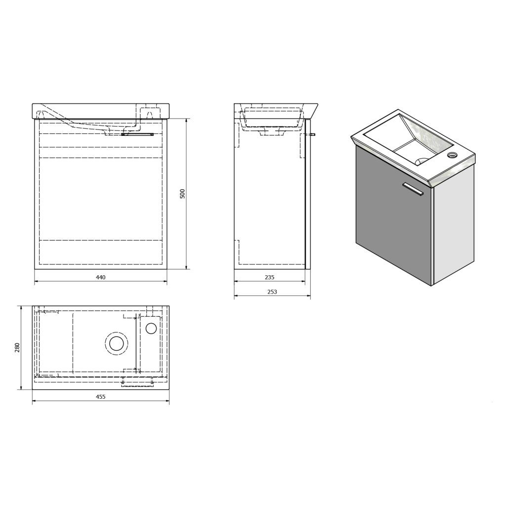 Aqualine, dulap lavoar ZOJA 44x50x23,5cm, alb, 51046