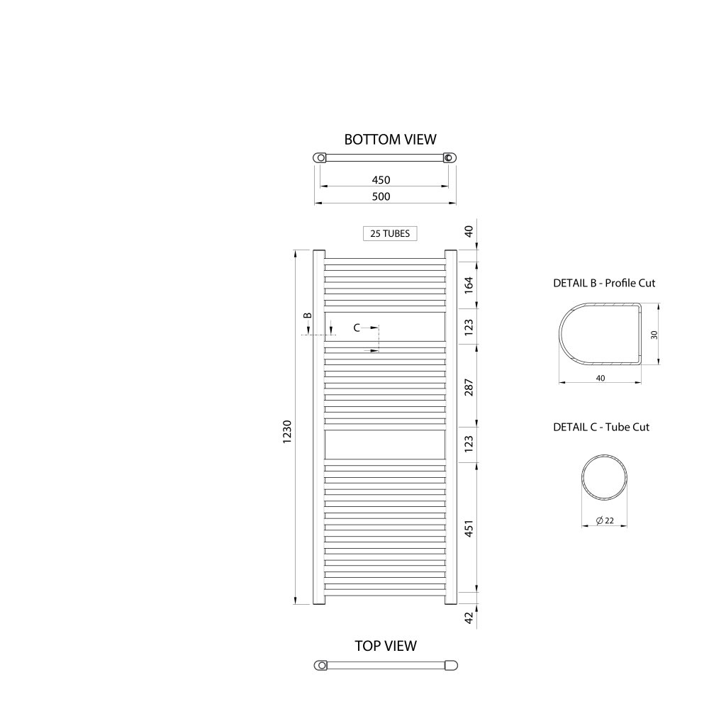 Aqualine, element de încălzire ALYA drept 500x1230 mm, crom, LLR104