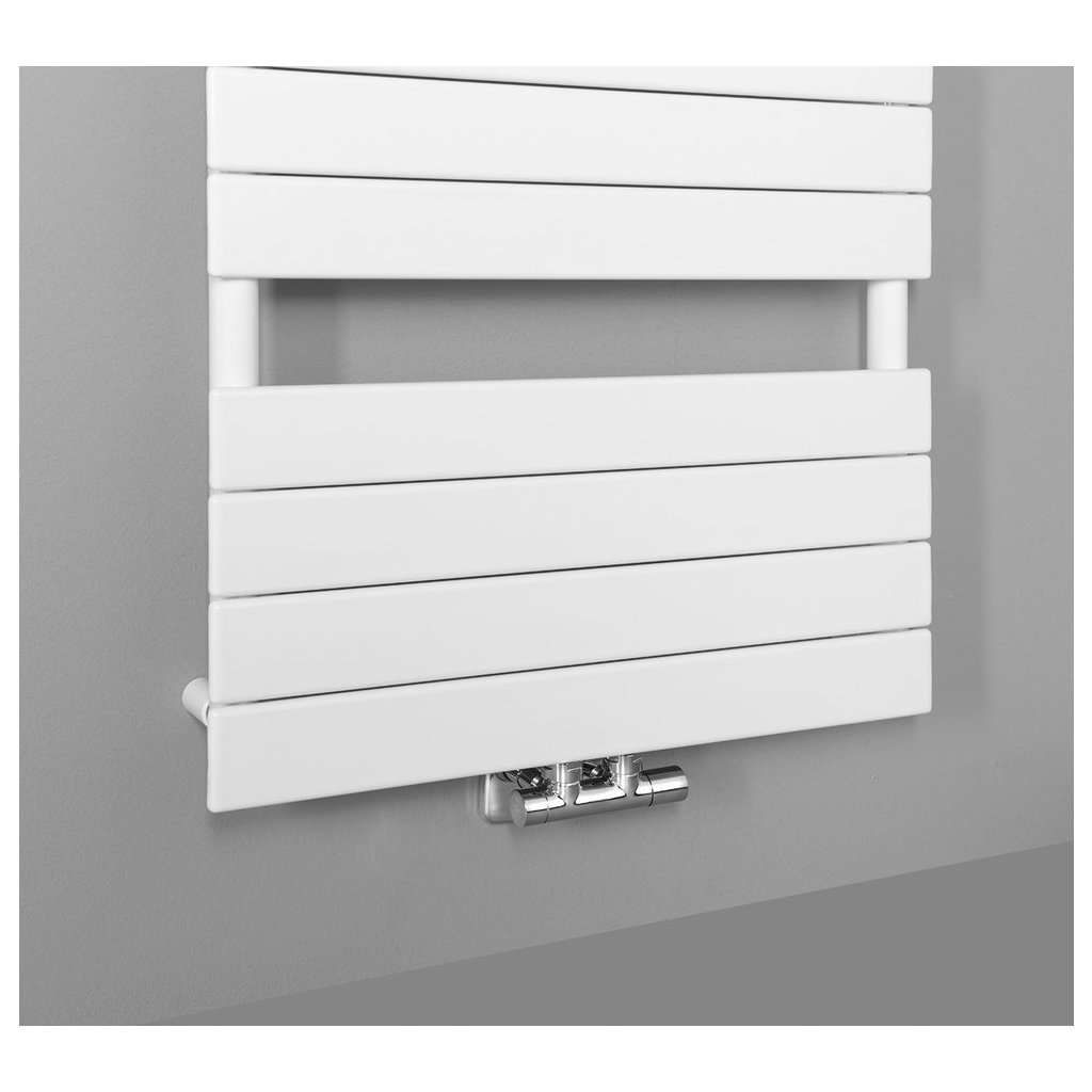 Un radiator stilat din profile de oțel rotunjite netede, cu o legătură centrală practică cu o distanță de 50 mm, iar în același timp orificiile cu semifabricate din colectoarele verticale permit conectarea combinată a unei tije electrice de încălzire sau a unei conexiuni laterale.
