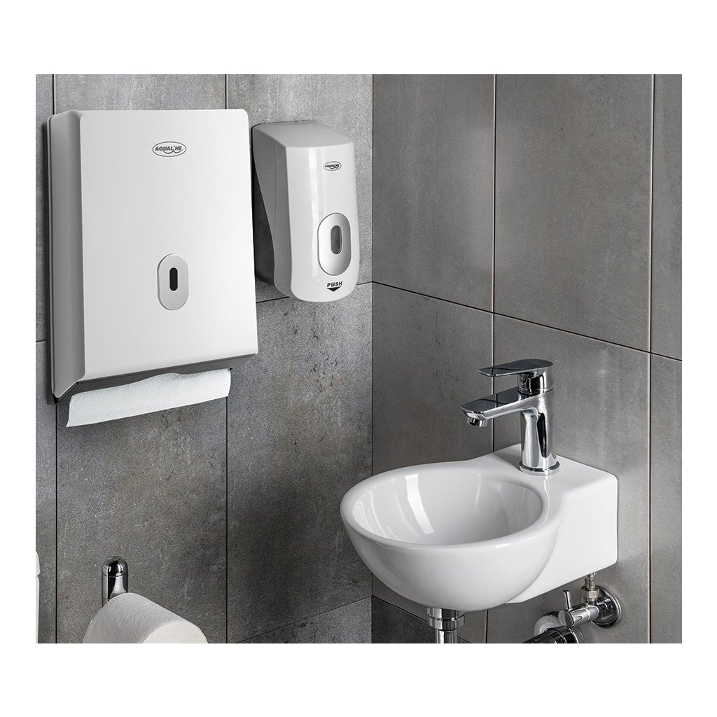 Aqualine, EMIKO dozator de săpun lichid pentru agățat 1000 ml, alb, 1319-73