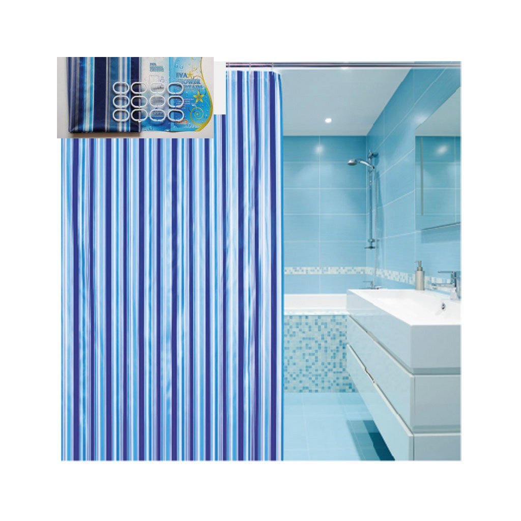 Aqualine, perdea de dus 180x180cm, vinil, albastru, dungi, ZV011