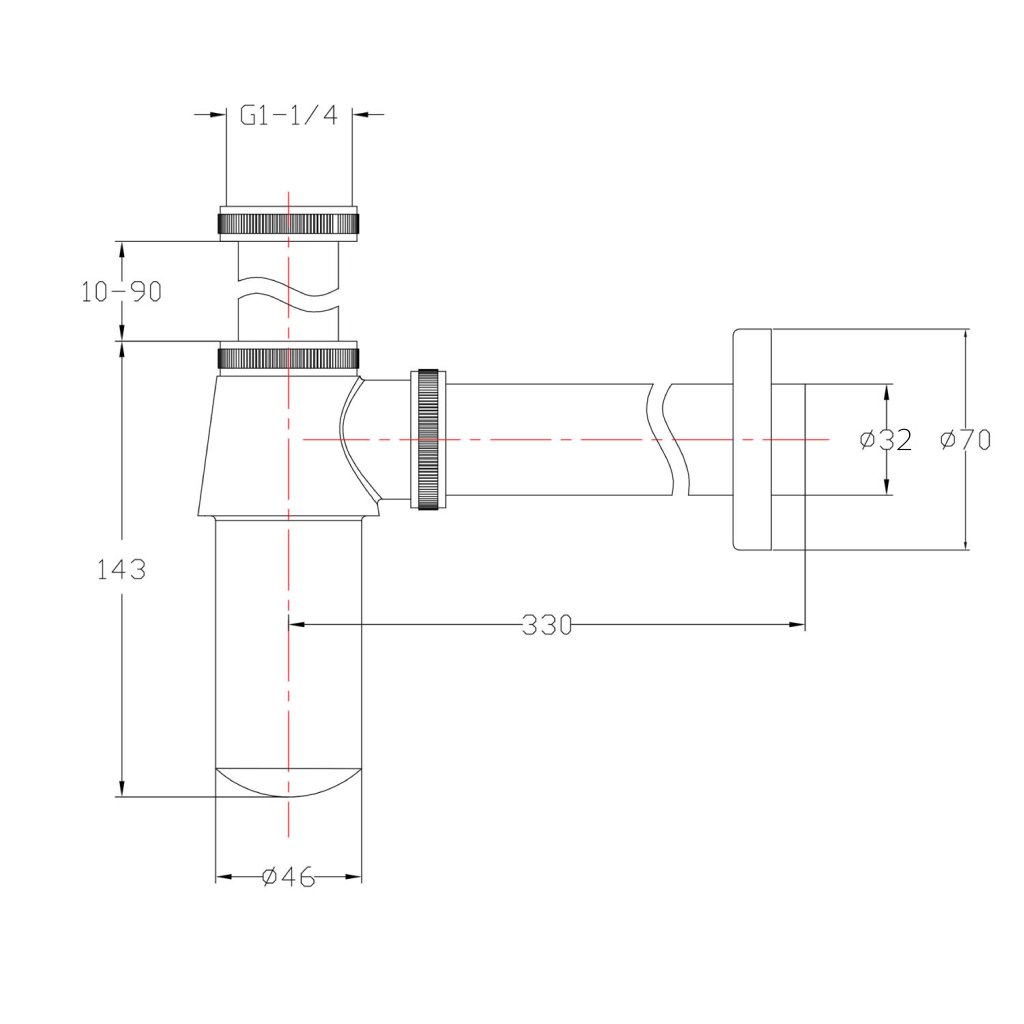 Aqualine, RETRO Sifon chiuveta 5/4", gunoi 32mm, bronz închis, 9686