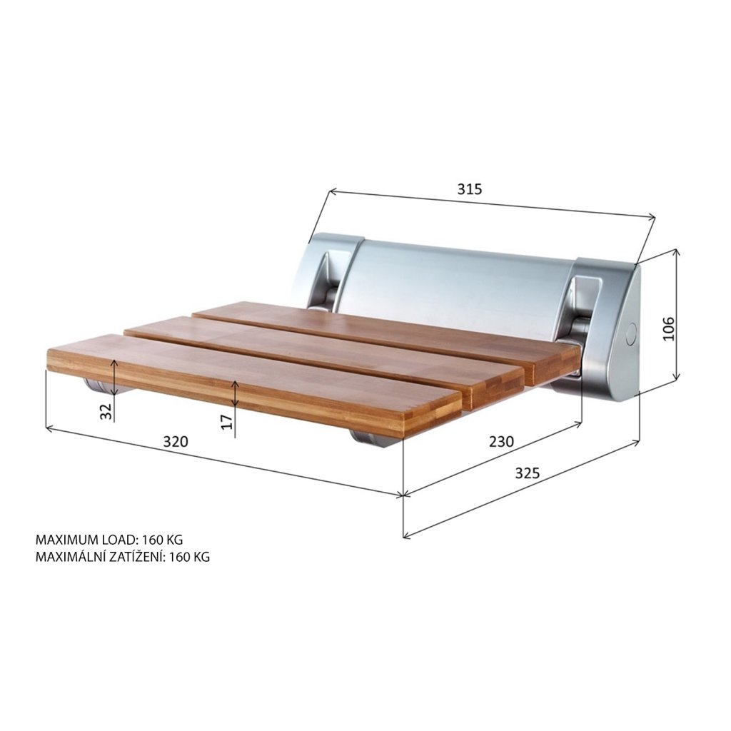 Aqualine, Scaun de duș pliabil 32x32,5 cm, WPC, gri, AE236GR