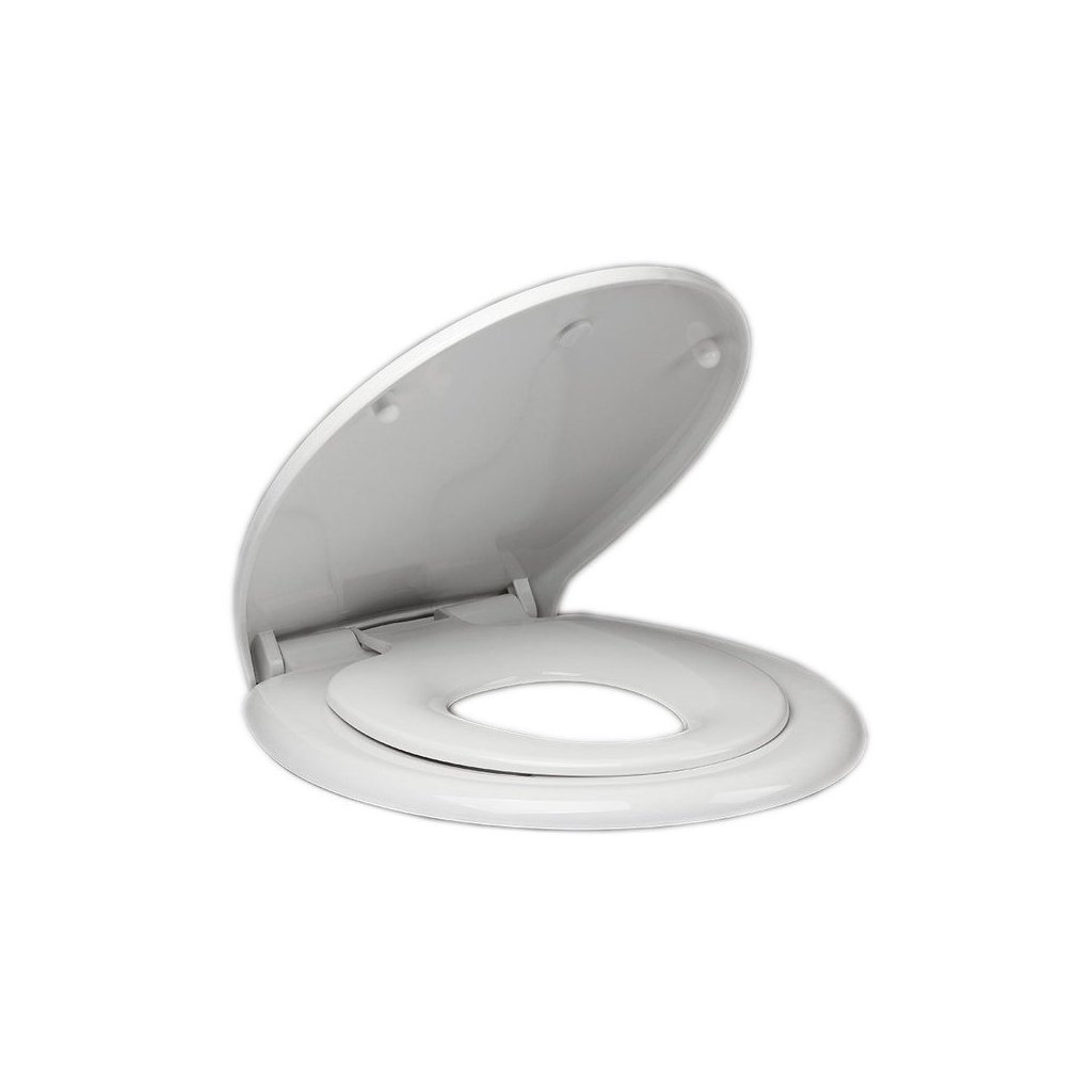 Scaun de toaletă cu scaun pentru copii integrat și pliere lentă. Scaunul pentru copil este echipat cu un magnet astfel incat sa adere la persoanele in varsta si sa nu interfereze cu utilizarea toaletei de catre adulti. Dacă copiii depășesc scaunul, inserția poate fi îndepărtată cu ușurință de pe scaunul pentru adulți.