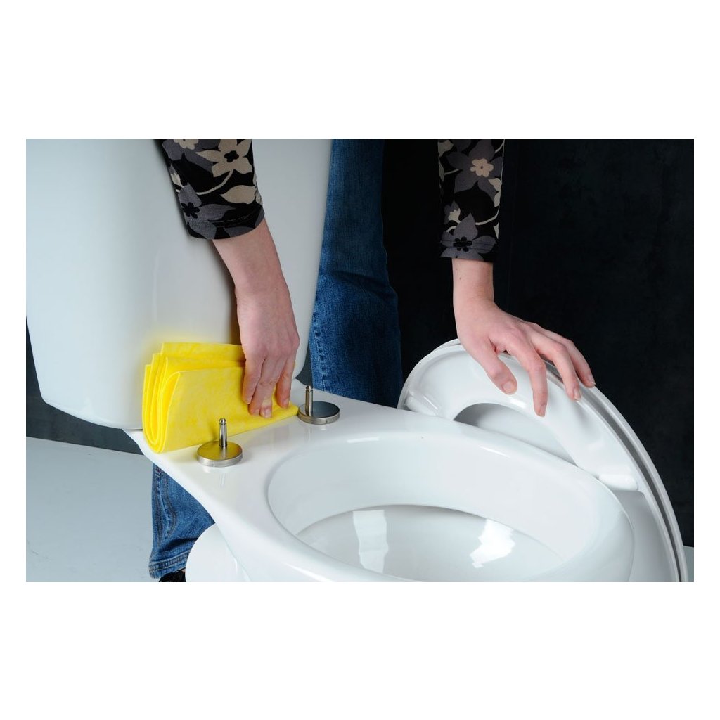 Demontarea si fixarea usoara a scaunului: prin apasarea balamalelor laterale sau a butonului (la unele modele, prin simpla plasare a scaunului in pozitie verticala), scaunul poate fi scos de pe balamale (fig. 1a, 1b), scaunul iar vasul poate fi spălat (fig. 2) și apoi pur și simplu apăsat puneți-l la loc (fig. 3).