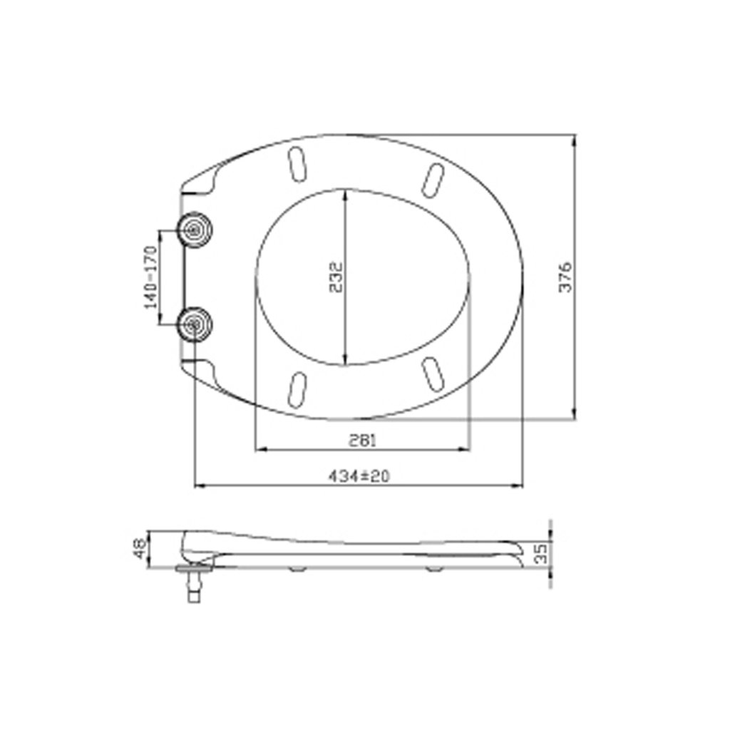 - Manere reglabile care permit adaptarea scaunului la dimensiunile vasului. Balamaua extensibilă este potrivită pentru o gaură obișnuită în vasul de toaletă cu Ø 14 mm