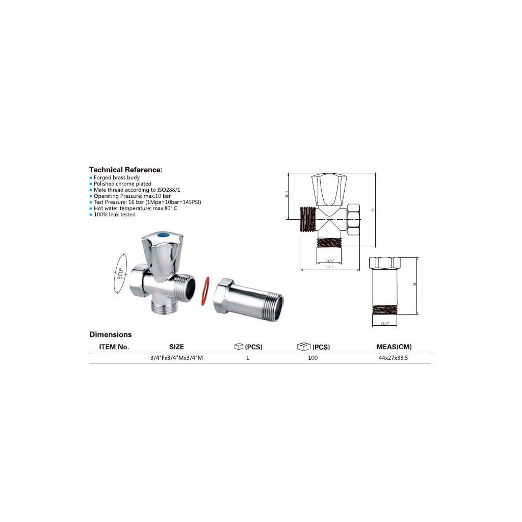 Aqualine, supapă mașină de spălat în fața robinetului de perete cu supapă de reținere 3/4'x3/4', crom, 5315