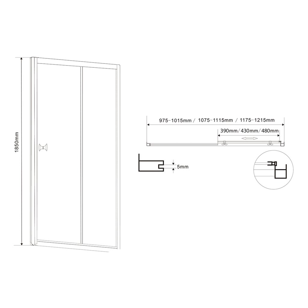 Aqualine, usa de dus culisanta AMADEO 1100 mm, sticla BRICK, BTS110