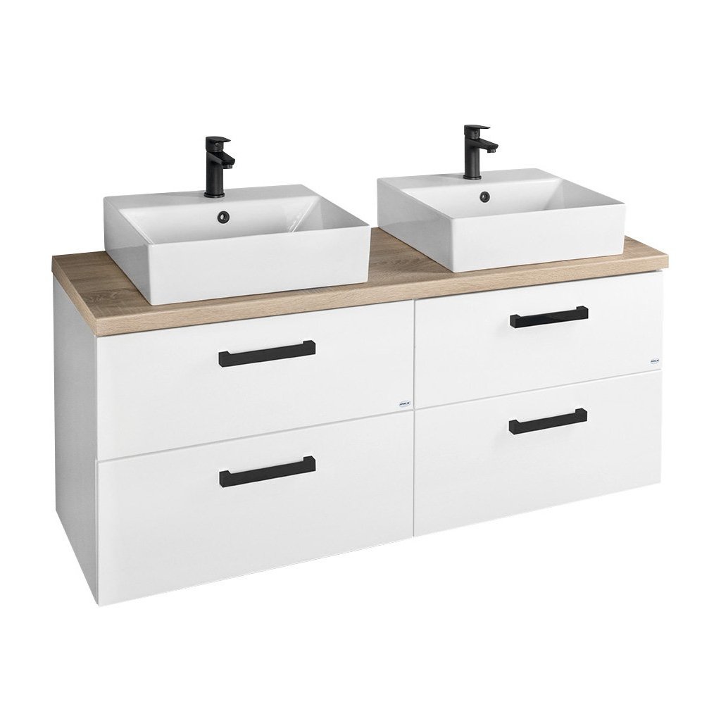 Aqualine, VEGA Set mobilier baie, latime 125 cm, alb/stejar platina, VG064-04