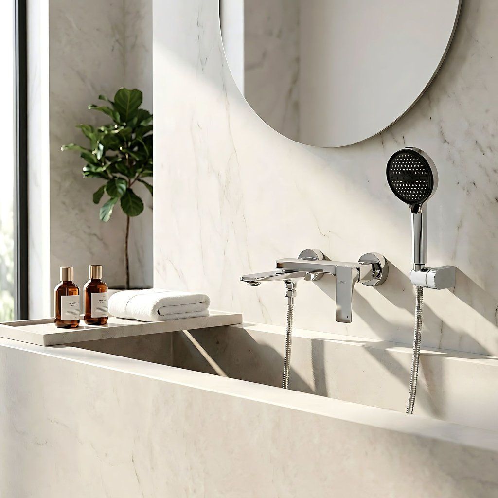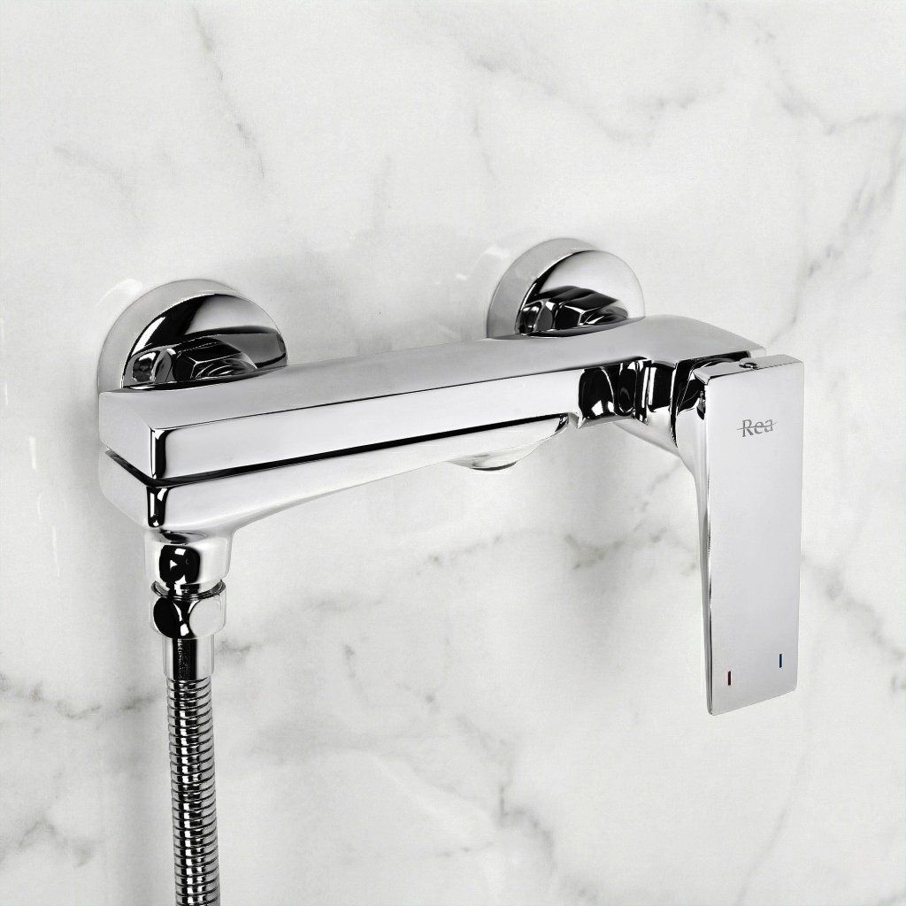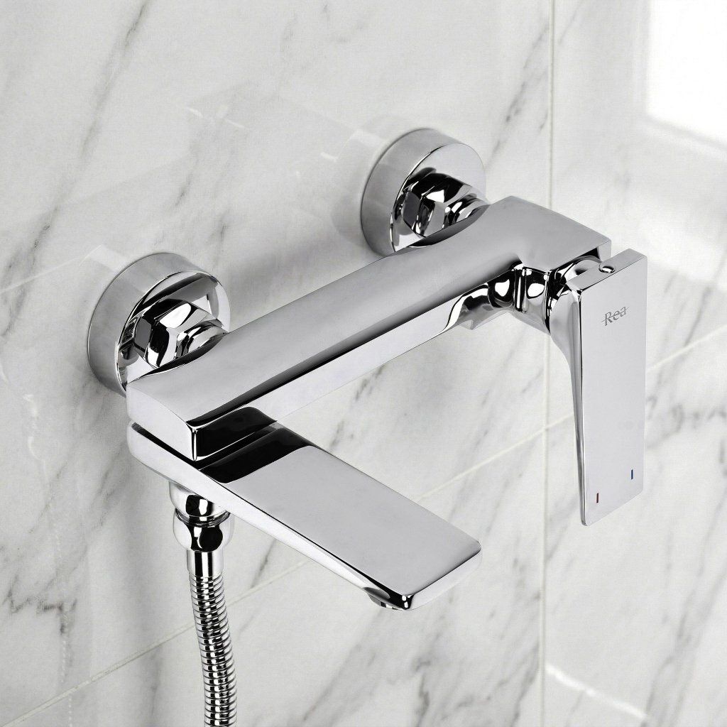 Baterie cadă cu montare pe perete Rea Prime Premium, cu set de duș manual, cromată, REA-B6749