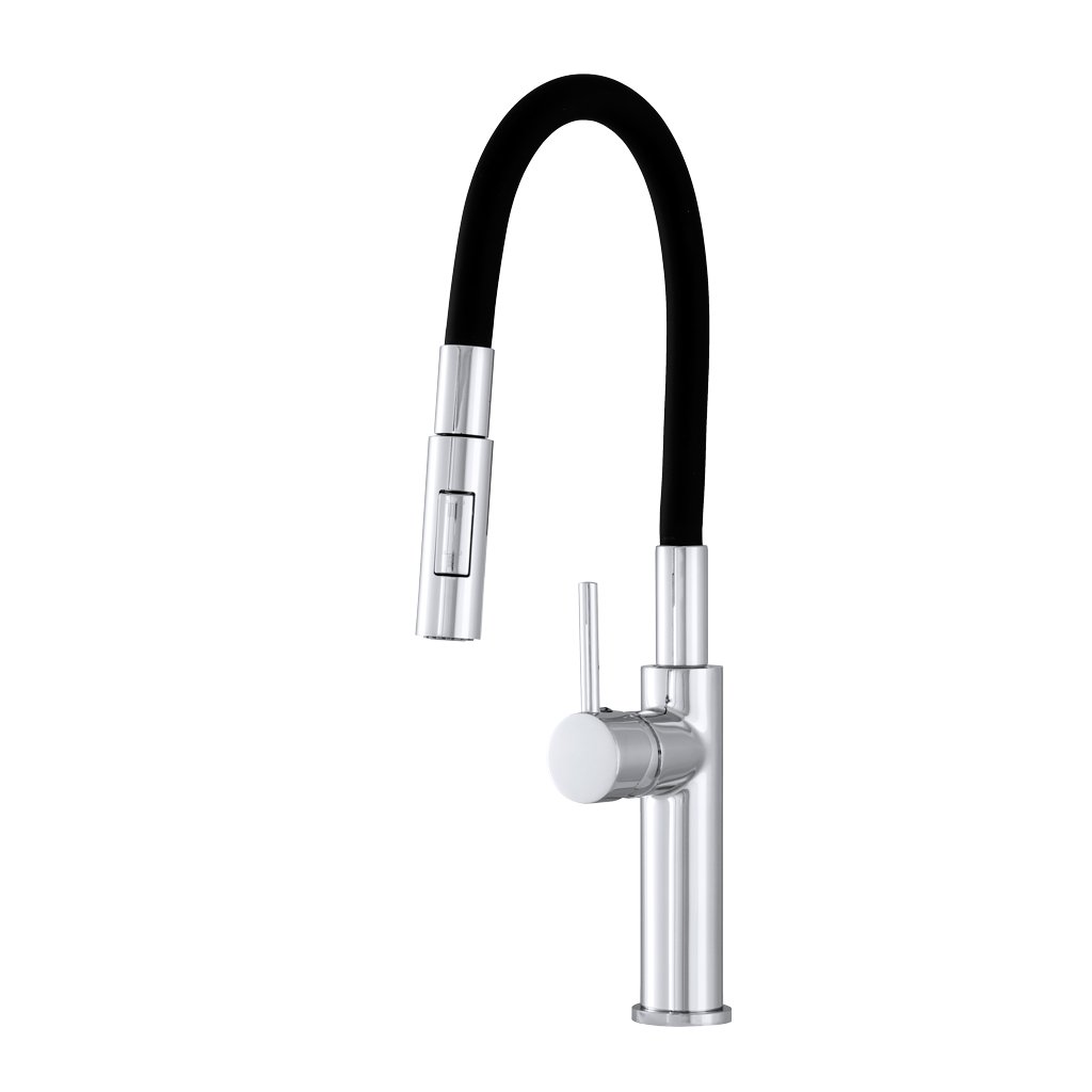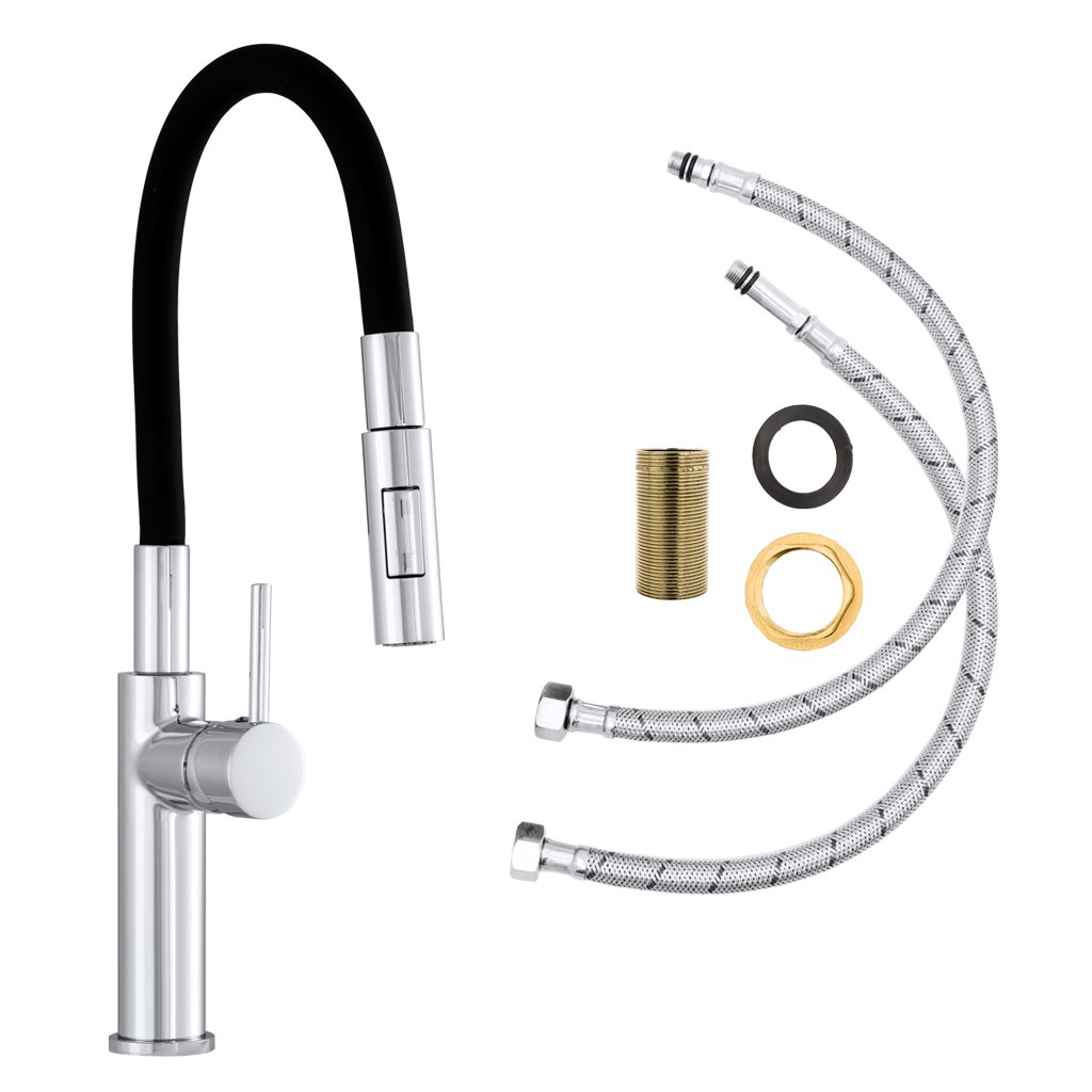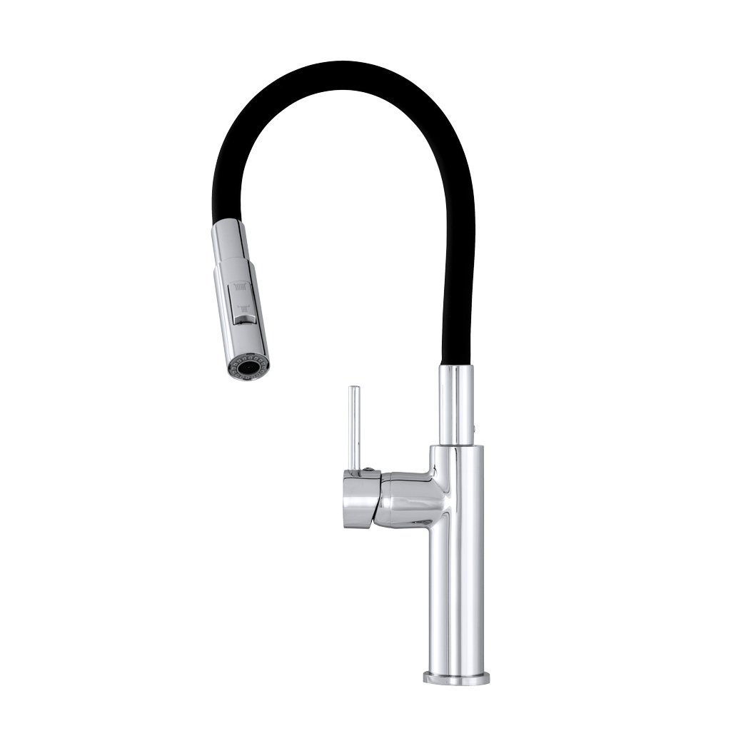 Baterie de bucătărie înaltă Gamma Full New, cu braț flexibil și spray, negru-crom, GMA-BFLN-CH