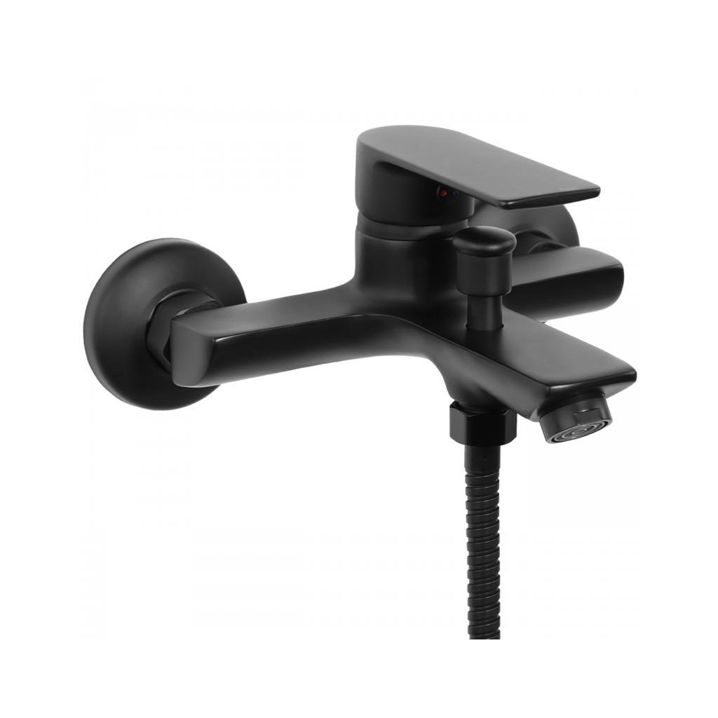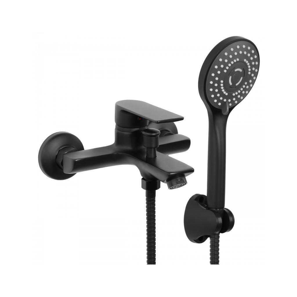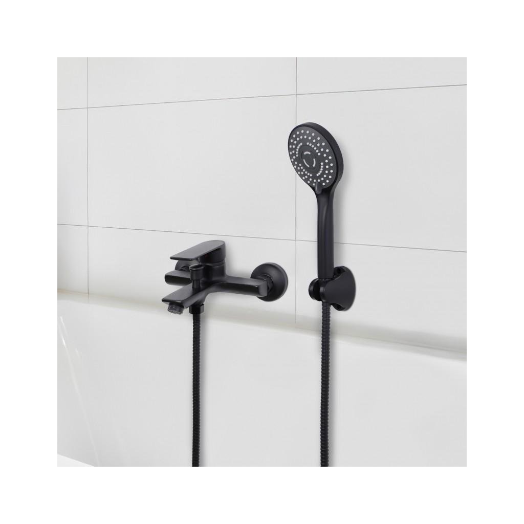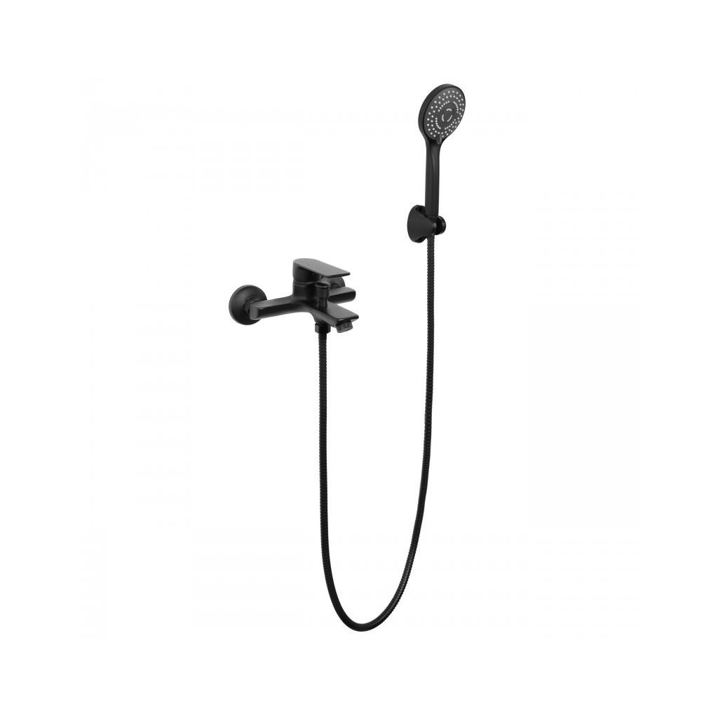 Baterie de cadă Erga Hary, montată pe perete cu set de duș manual, negru mat, ERG-YKA-BW.HARY-BLK