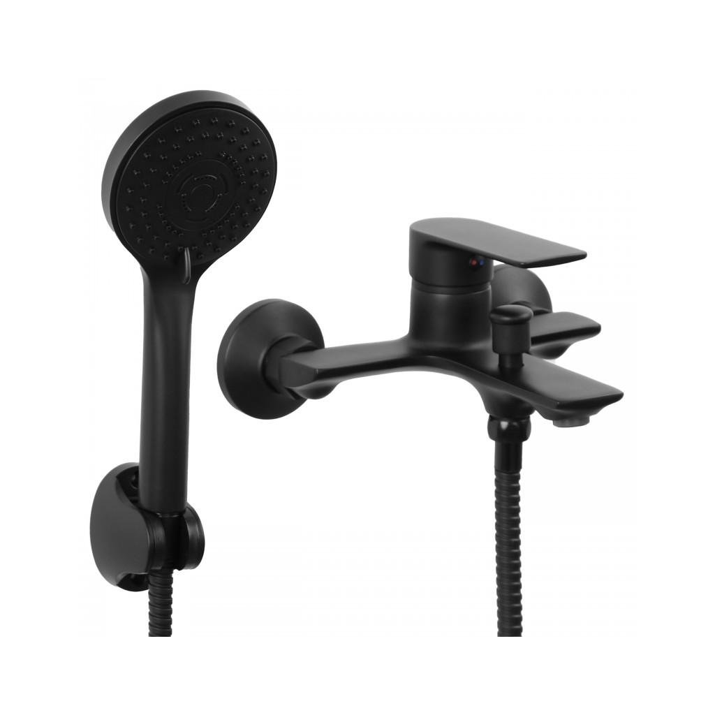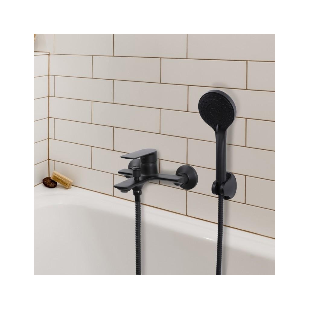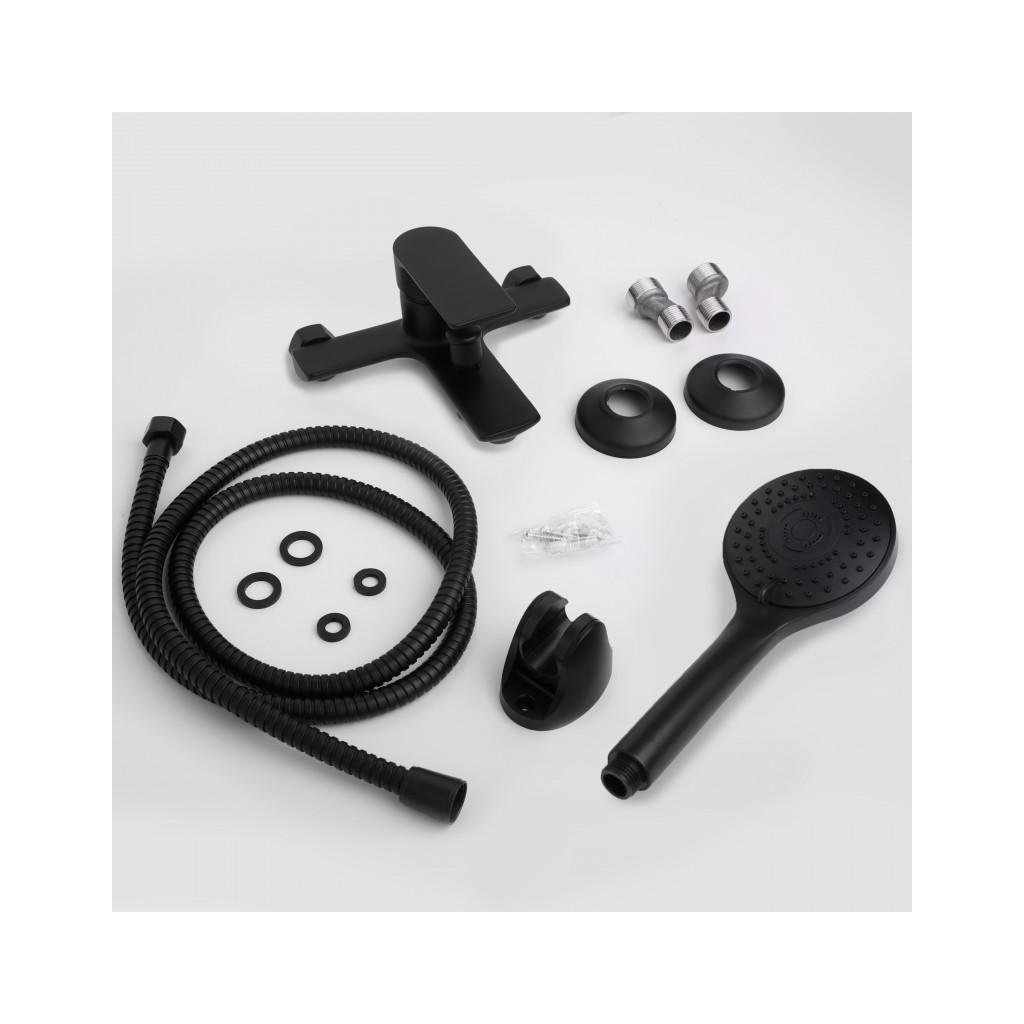 Baterie de cadă Erga Remi, montată pe perete cu set de duș manual, negru mat, ERG-YKA-BW.REMI-BLK