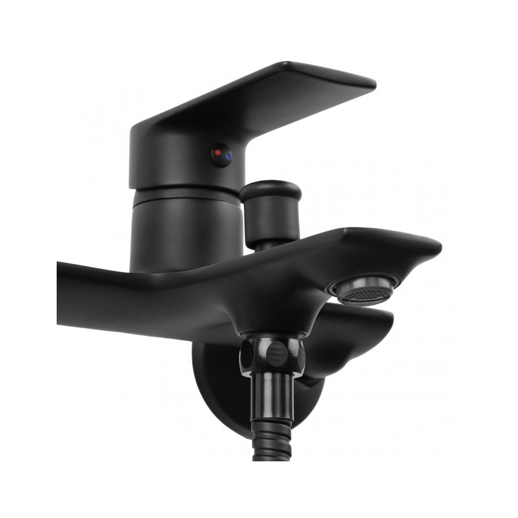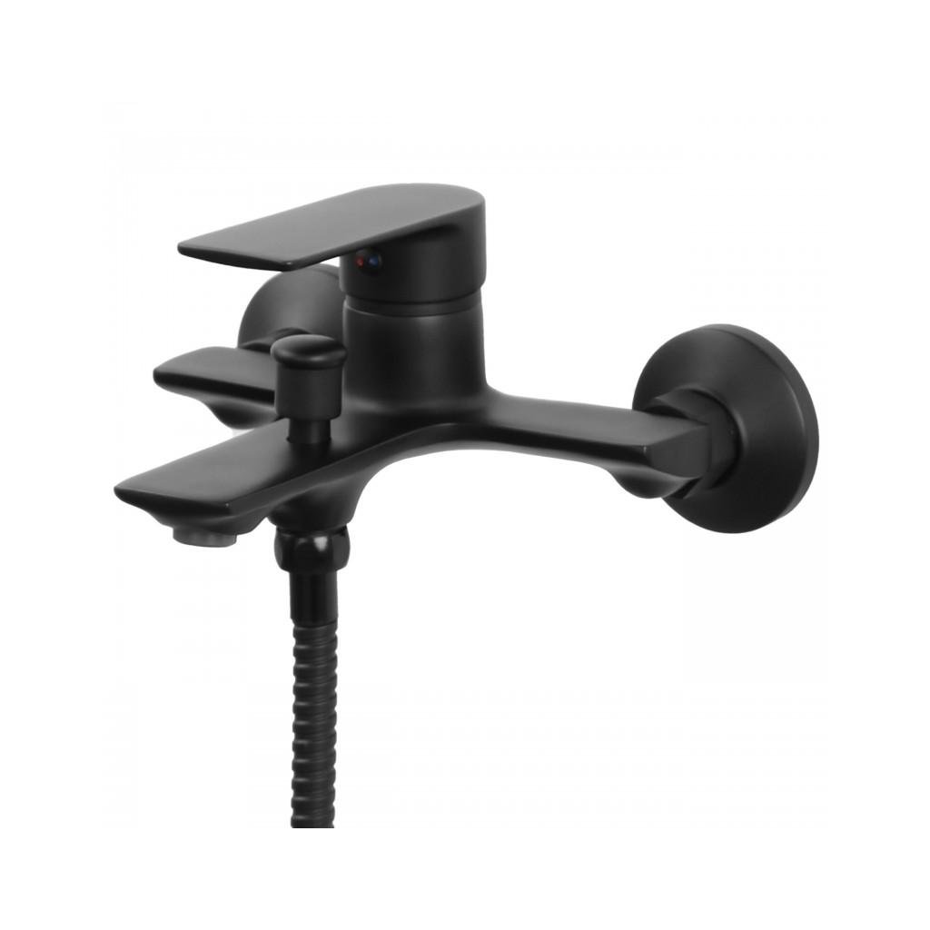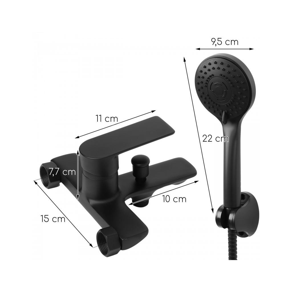 Baterie de cadă Erga Remi, montată pe perete cu set de duș manual, negru mat, ERG-YKA-BW.REMI-BLK