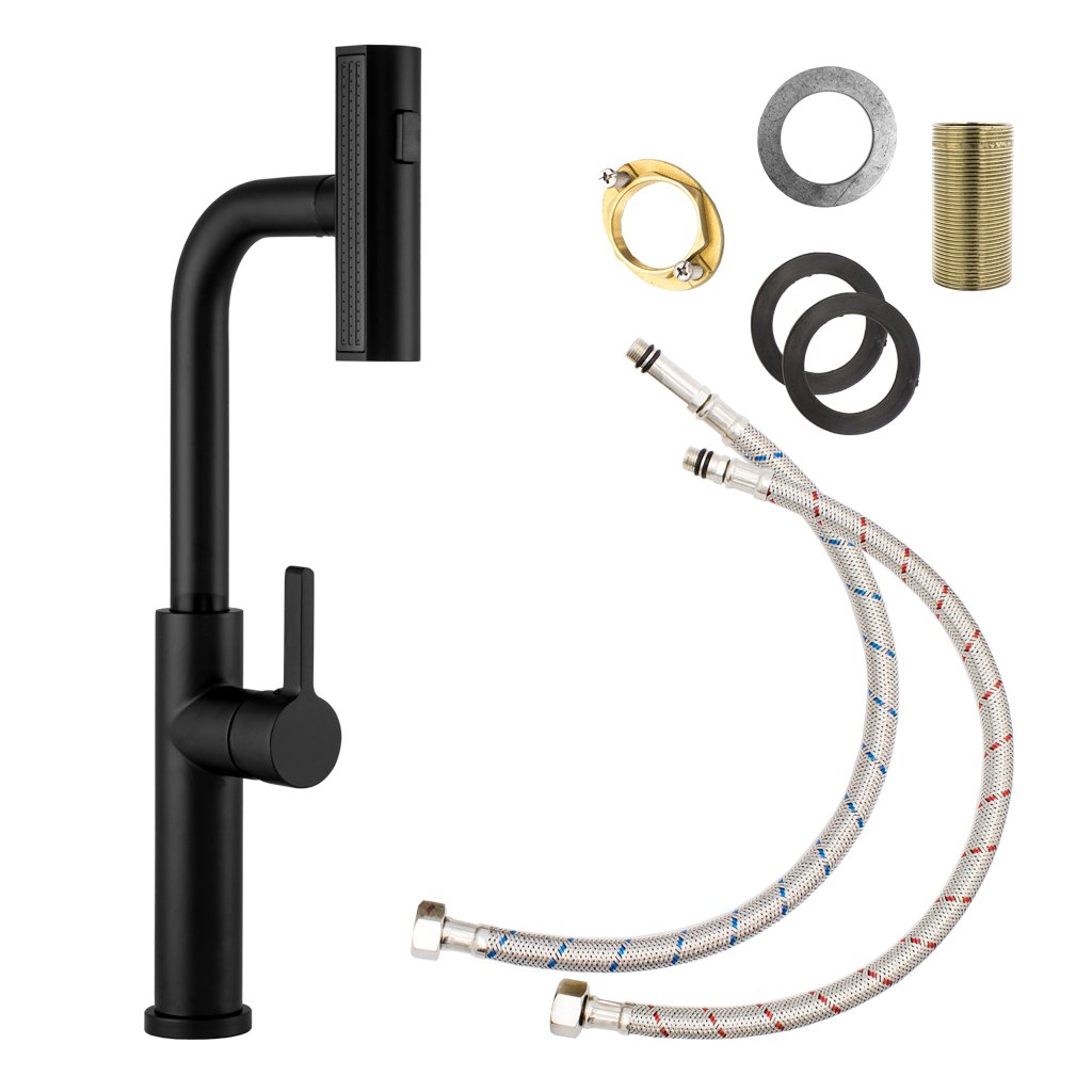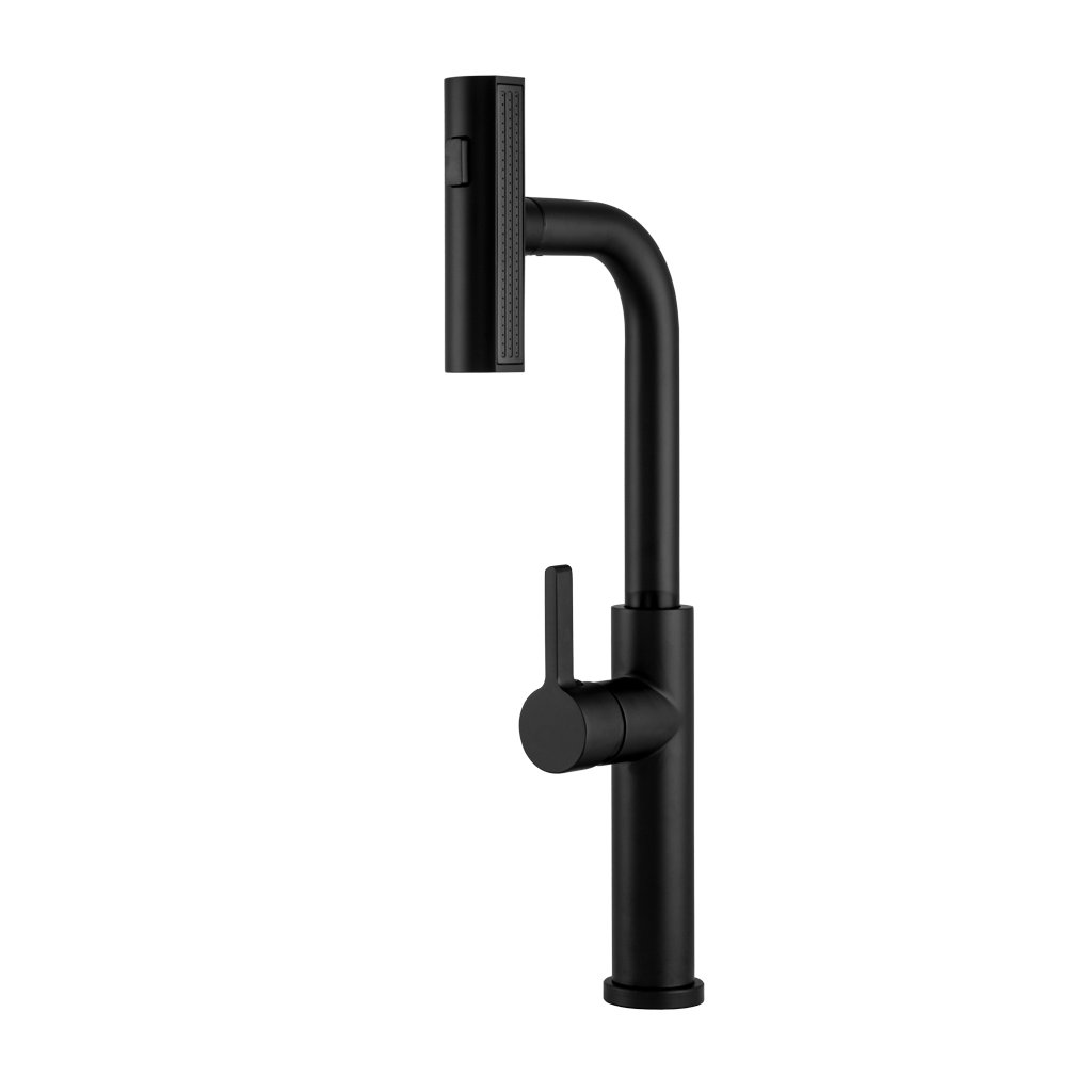 Baterie Gamma Rotary, înaltă pentru chiuvetă cu gura de scurgere extrabilă h-415, negru mat, GMA-BR-BK