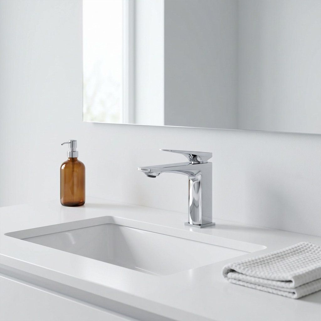 Formatul Prime redus este, de asemenea, o alegere practică pentru băile cu tavane joase sau rafturi deasupra chiuvetei — înălțimea compactă a bateriei nu va intra niciodată în conflict cu oglinda sau dulapul de deasupra. Montare pe suport cu filet standard de 3/8 inch .