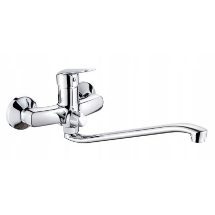 Deante Boro, baterie lavoar montată pe perete 150 mm cu braț extins și racord de duș, crom, BMO_056M