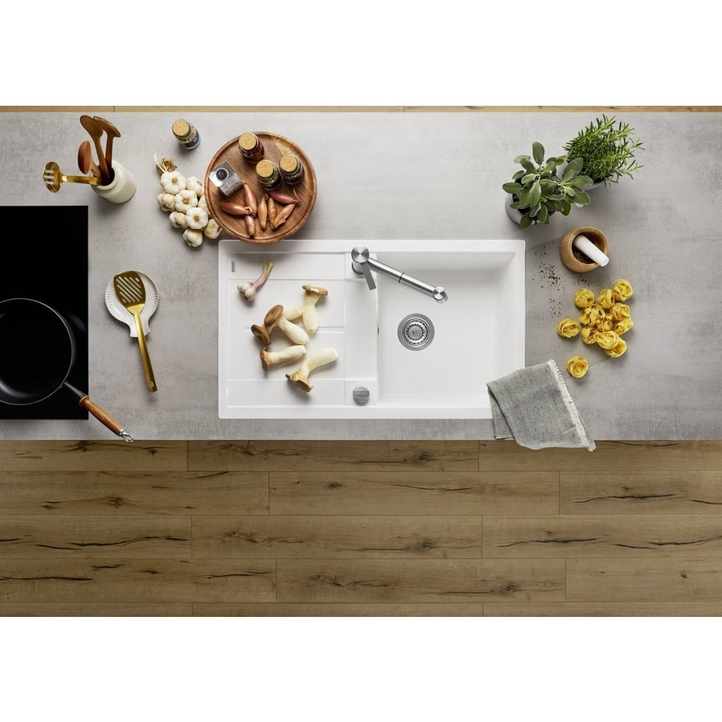 METRA 5 S de la Blanco este o chiuveta cu o camera cu dimensiunile de 860 x 500 mm. Tava de chiuveta cu dimensiunile de 390 x 430 mm are o adancime de 190 mm si are o suprafata practica de scurgere pentru o utilizare mai eficienta a chiuvetei. Chiuveta este destinata montarii pe blat dar si sub blat cu o latime a dulapului de minim 400 mm. Puteți alege dintr-o gamă largă de culori. O chiuvetă din granit este foarte ușor de întreținut. De asemenea, rezistă la zgârieturi și alte eventuale daune din utilizarea normală. Este stabilă în culoare și, de asemenea, rezistă la temperaturi ridicate. Unul dintre avantajele chiuvetei este porozitatea redusă și elementele antibacteriene, datorită cărora chiuveta devine o opțiune igienică pentru gospodăria ta.